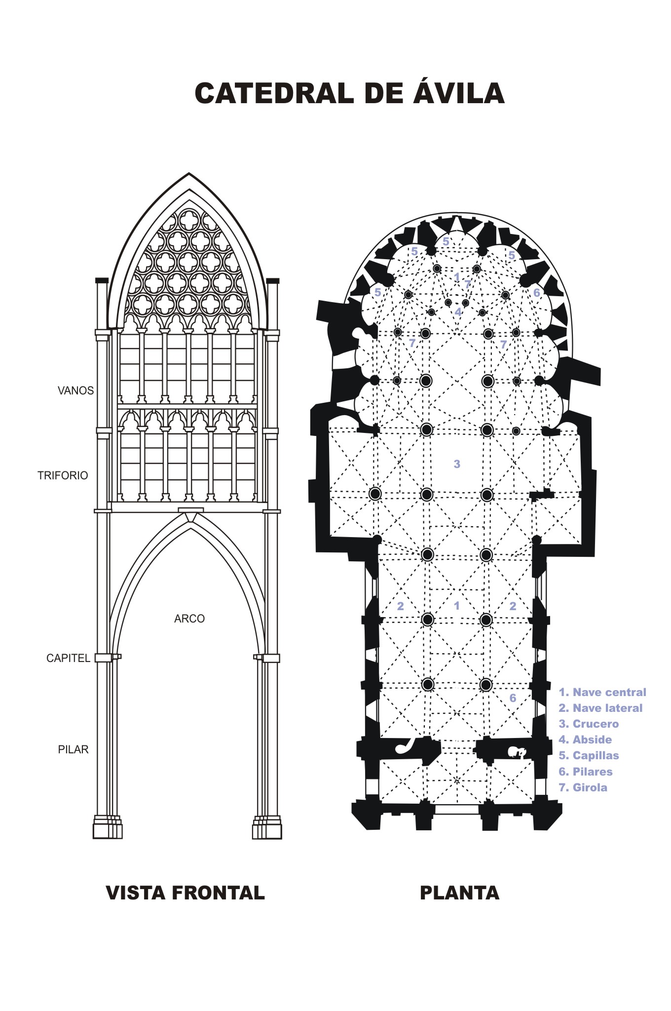 Alzado y planta de la catedral de Ávila