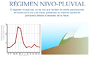 Esquema de precipitaciones y caudal de agua en un régimen nivopluvial