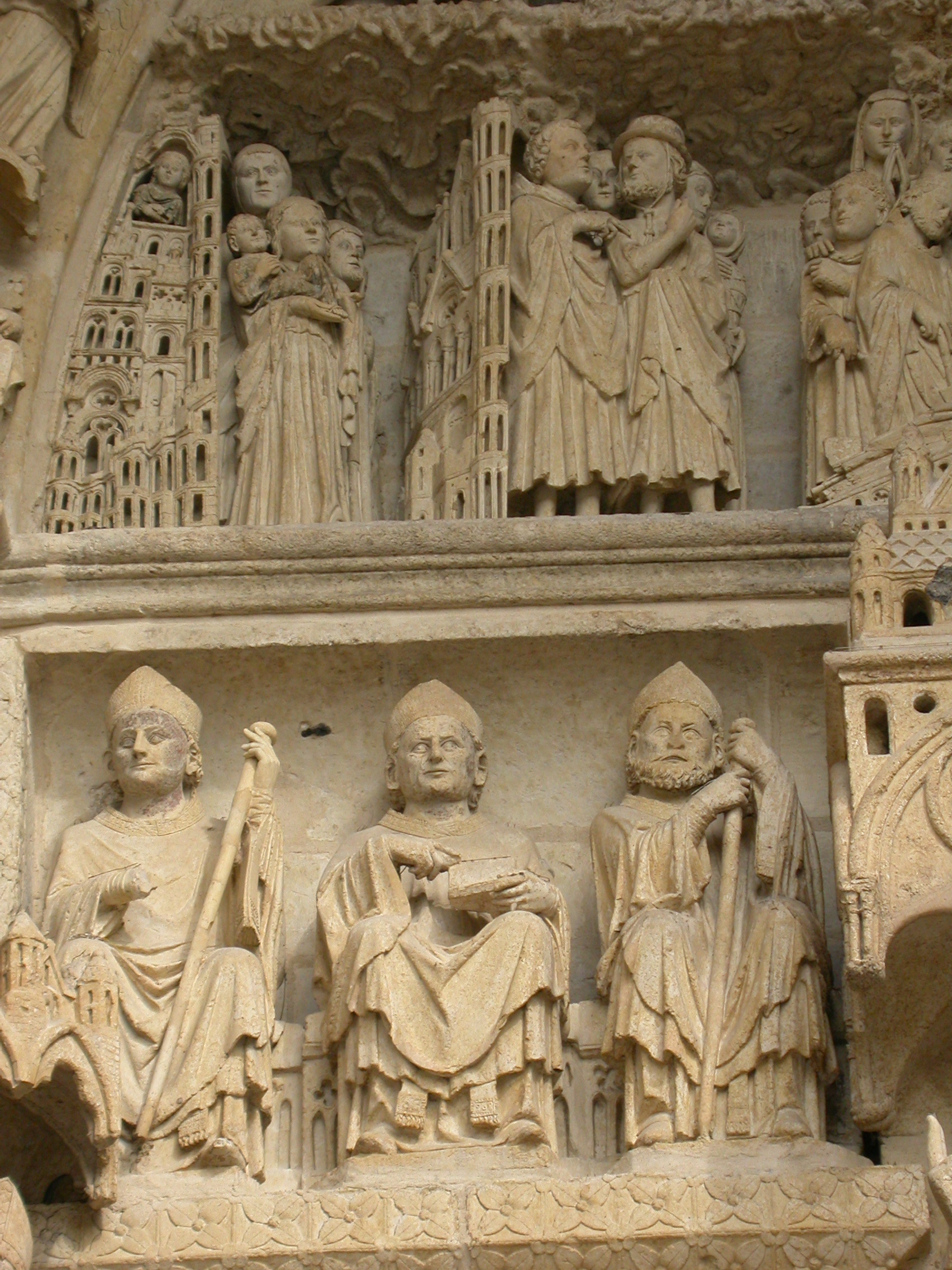 Detalle del tímpano en el portal de San Fermín de la Catedral de Amiens, Francia