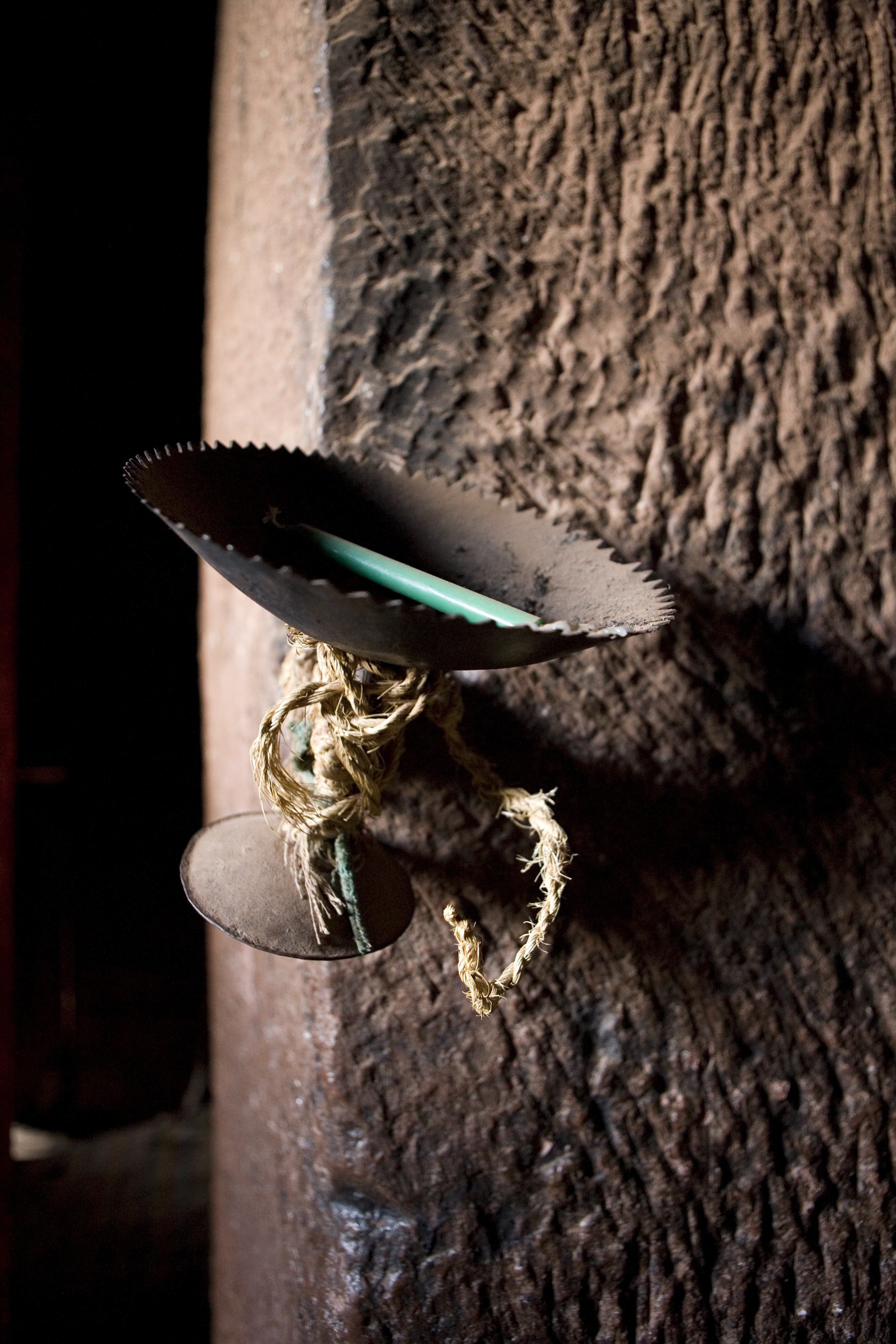 Candelabro en el interior de Bete Denagei en Lalibela, Etiopía