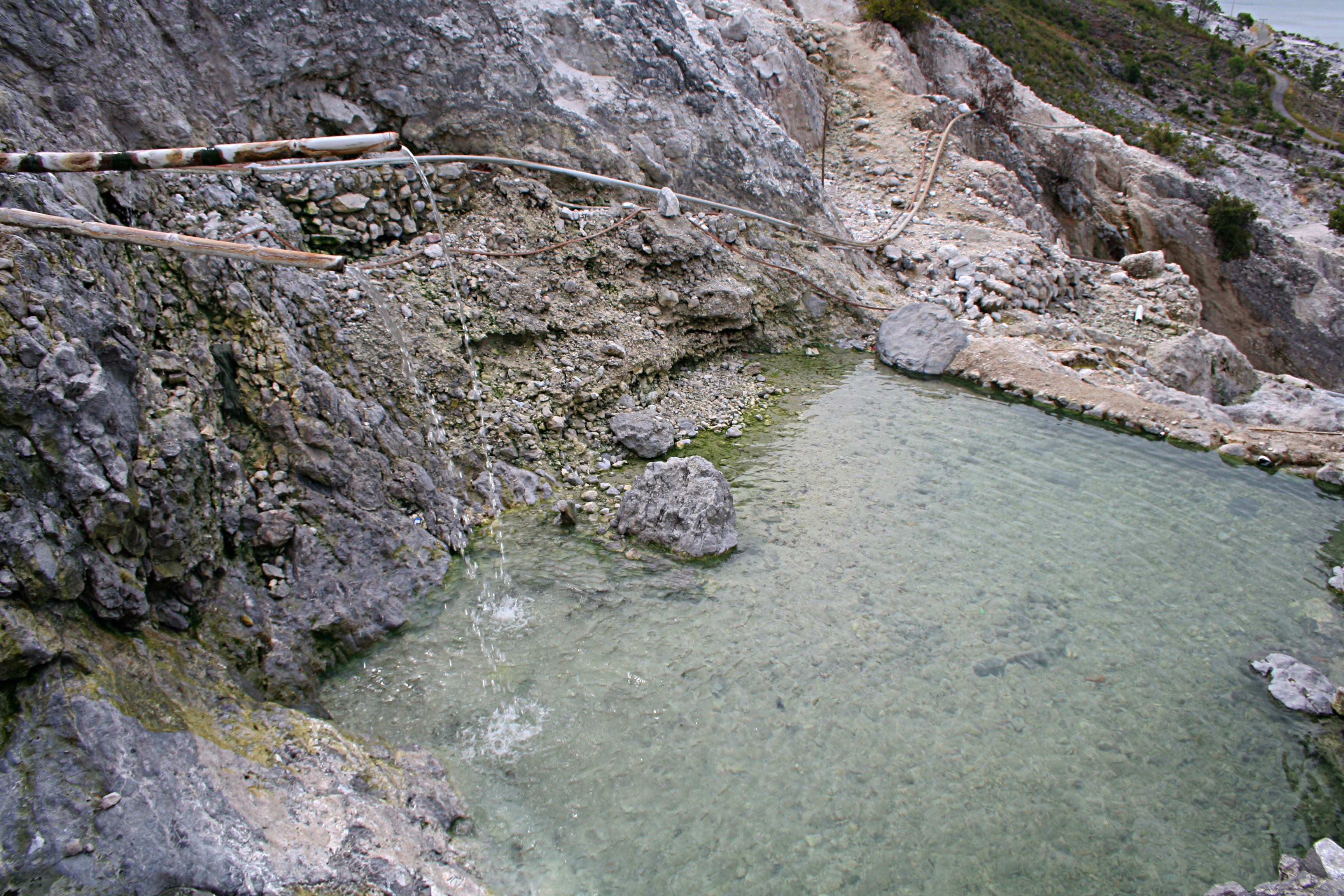 Fuente de aguas termales sulfurosas del Lago Toba, Sumatra, Indonesia