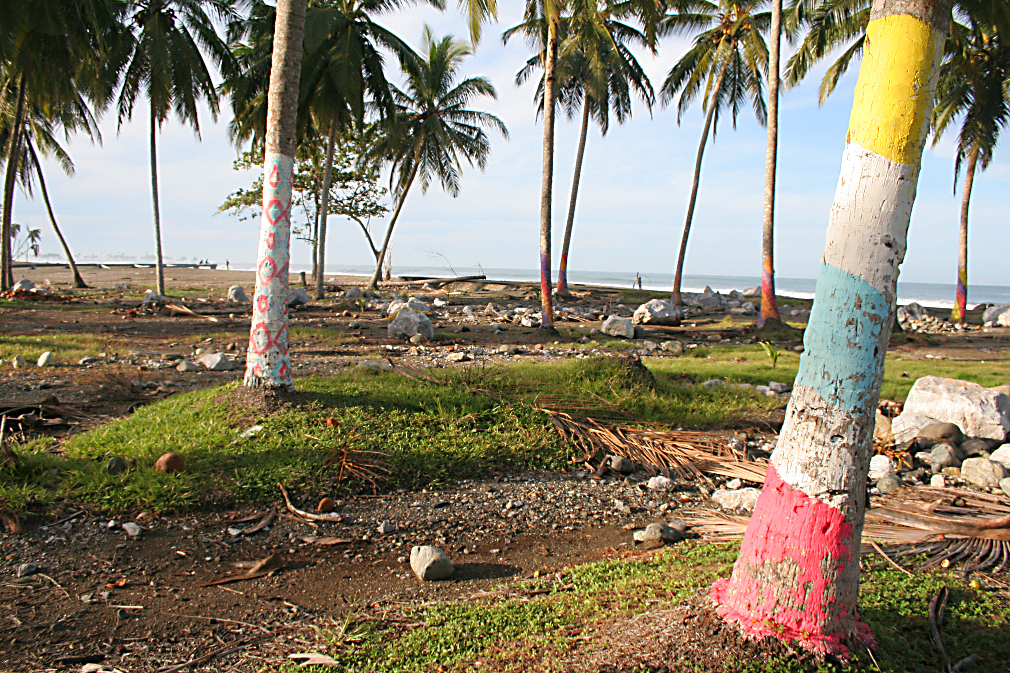 Zócalos de casas y palmeras pintadas de Melaboh, Sumatra, Indonesia