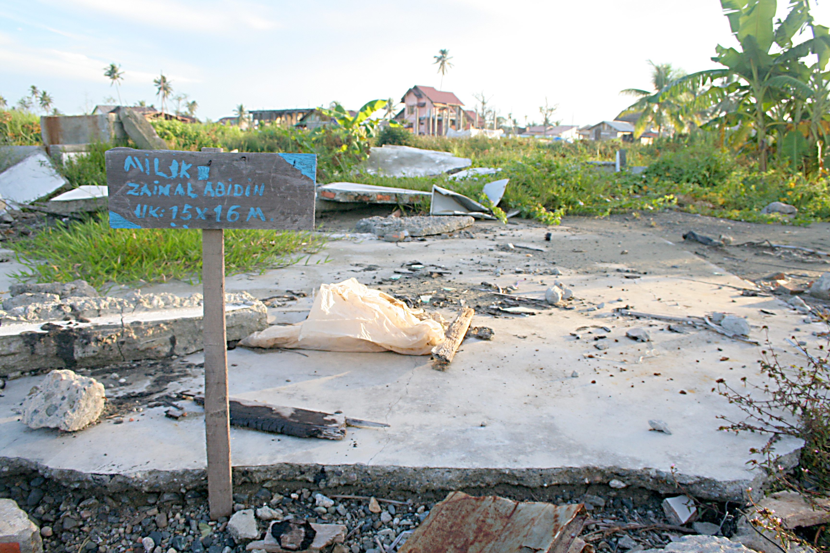Cartel reivindicando propiedad en Melaboh, Sumatra, Indonesia