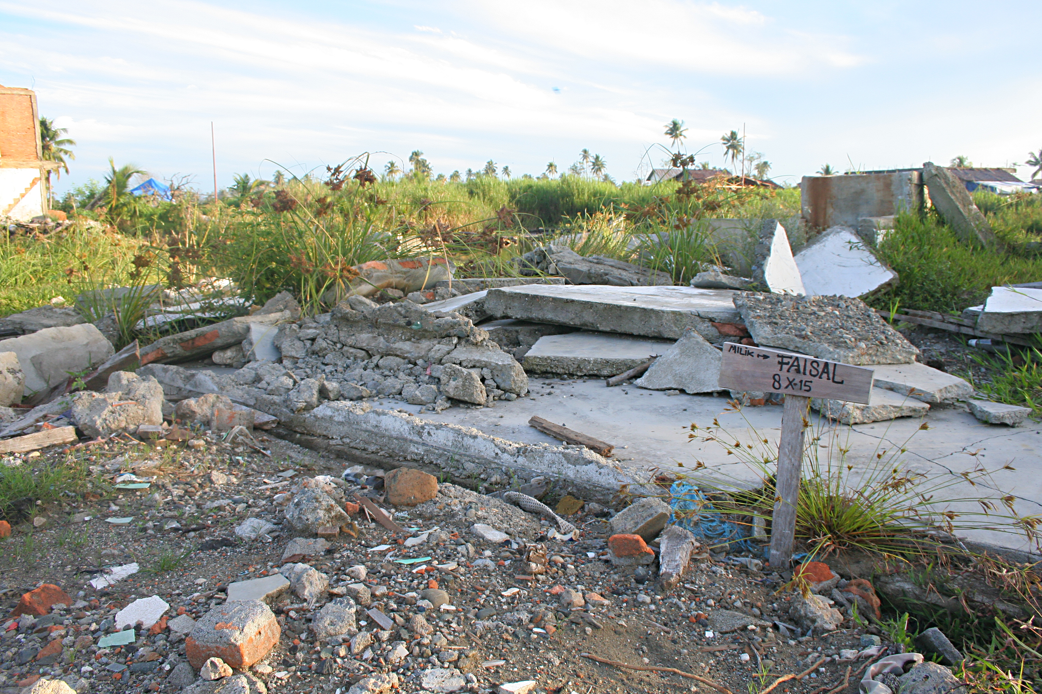 Cartel reivindicando propiedad en Melaboh, Sumatra, Indonesia