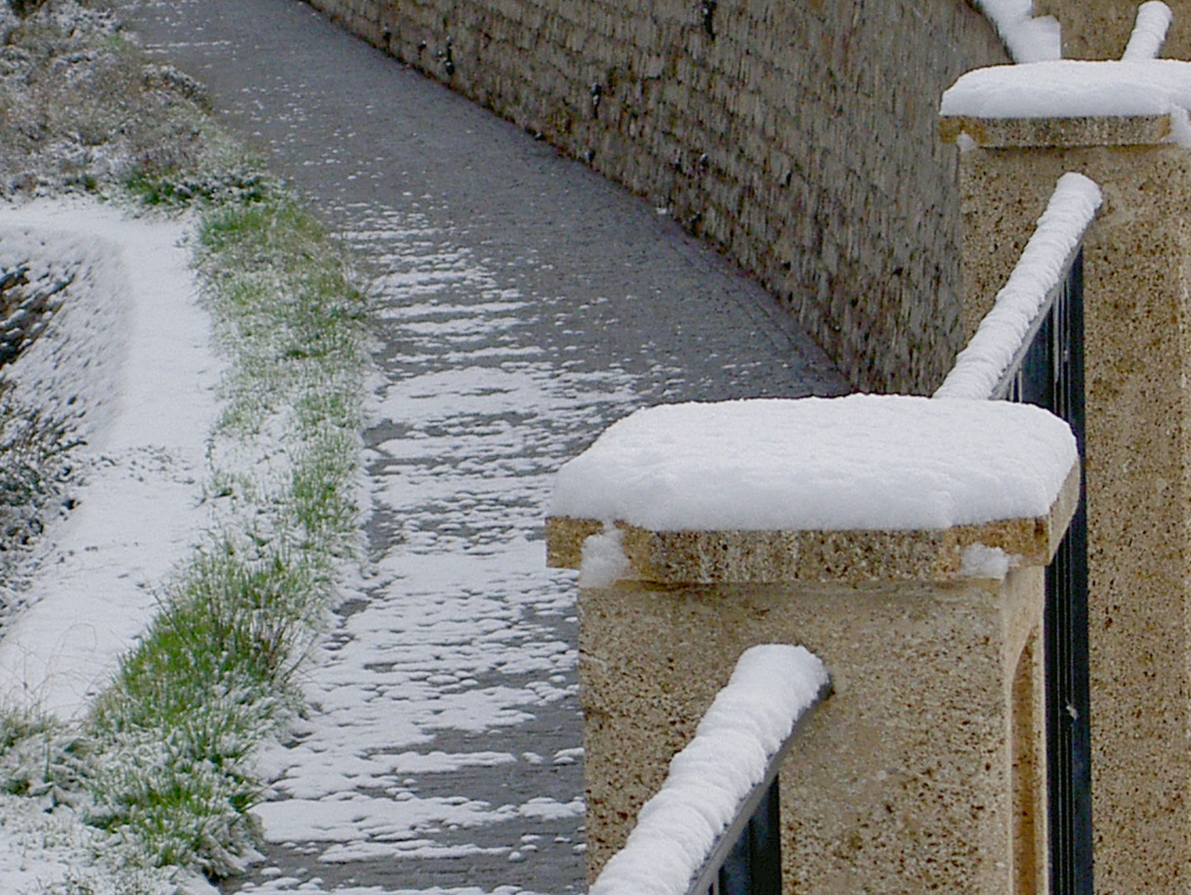 Río Genil a su paso por el Paseo del Salón, Granada, con nieve.
