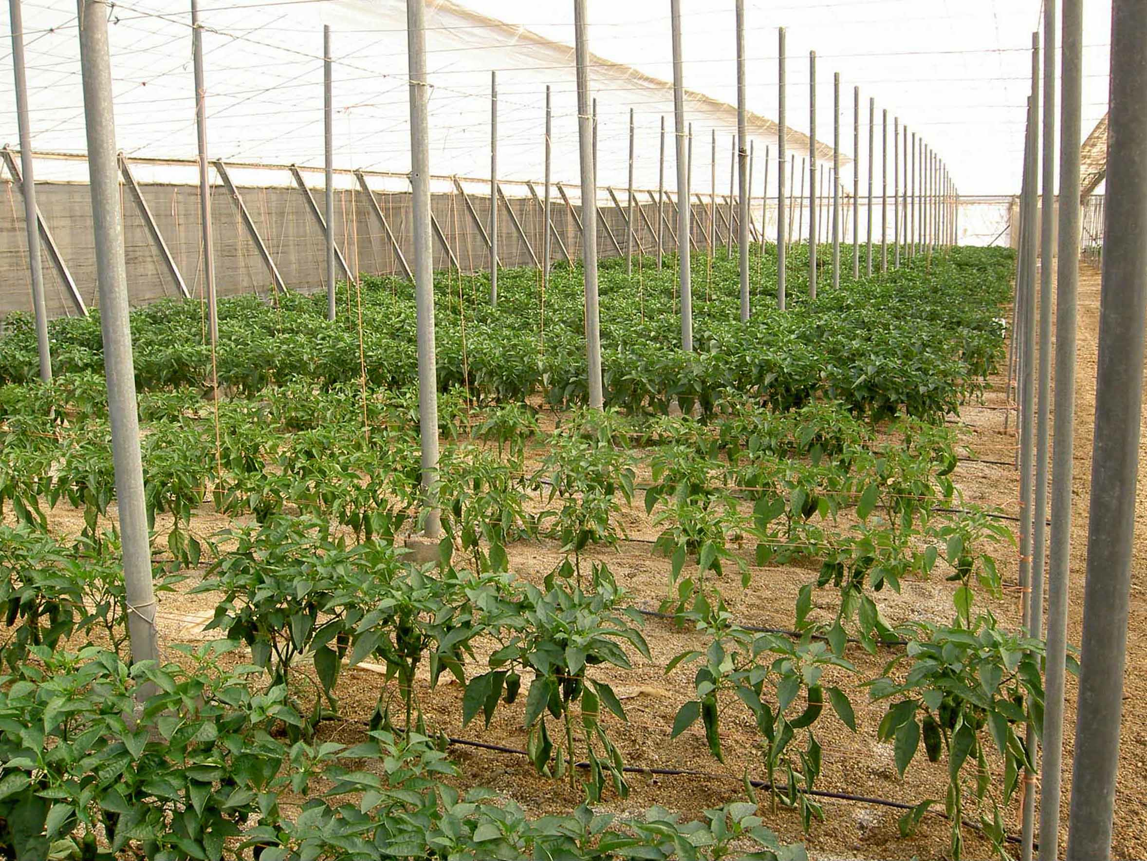 Estructura y cultivos en un invernadero en El Ejido, Almería.
