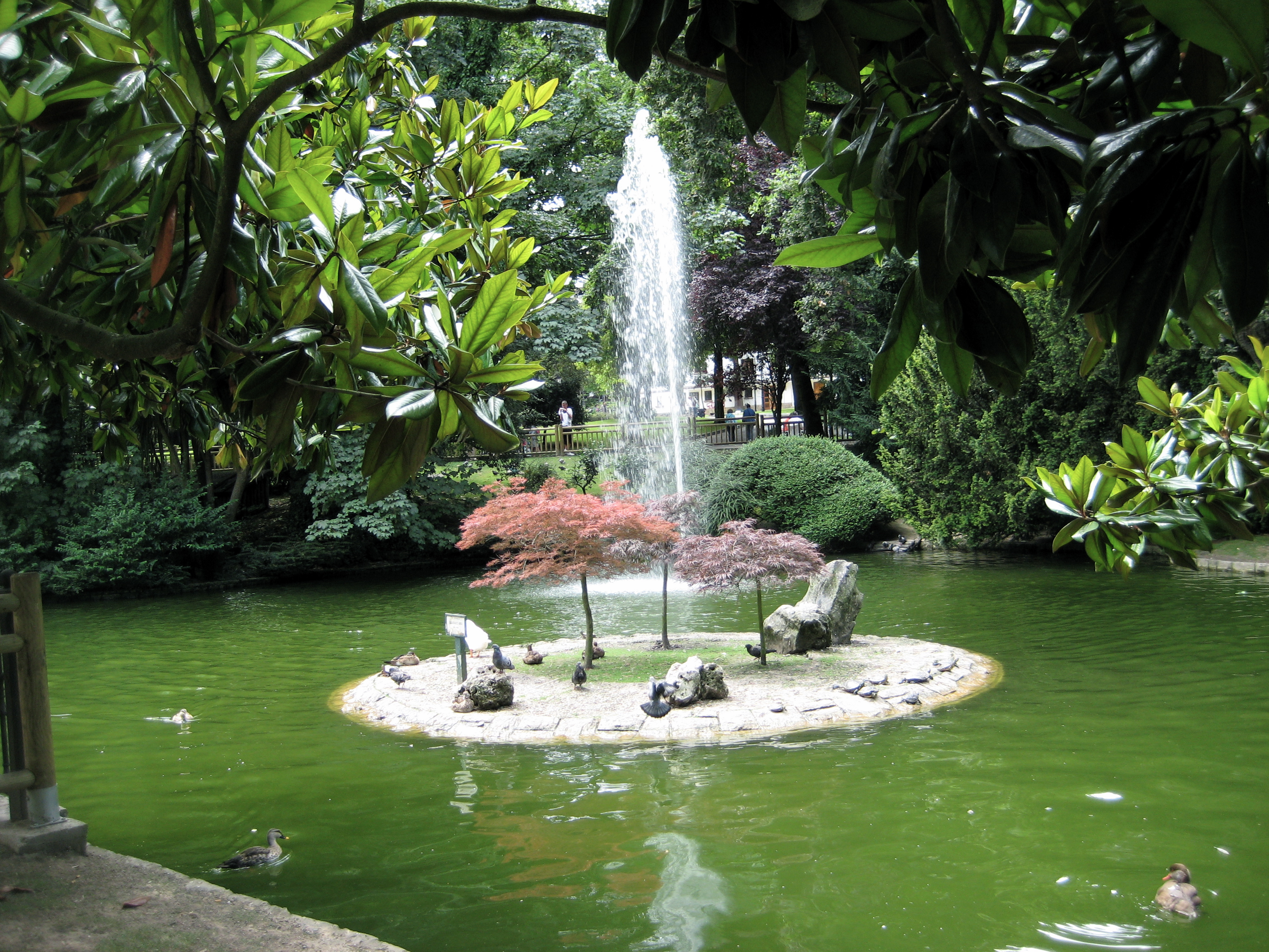 Estanque de los patos en el parque Campo de San Francisco en Oviedo, Asturias.