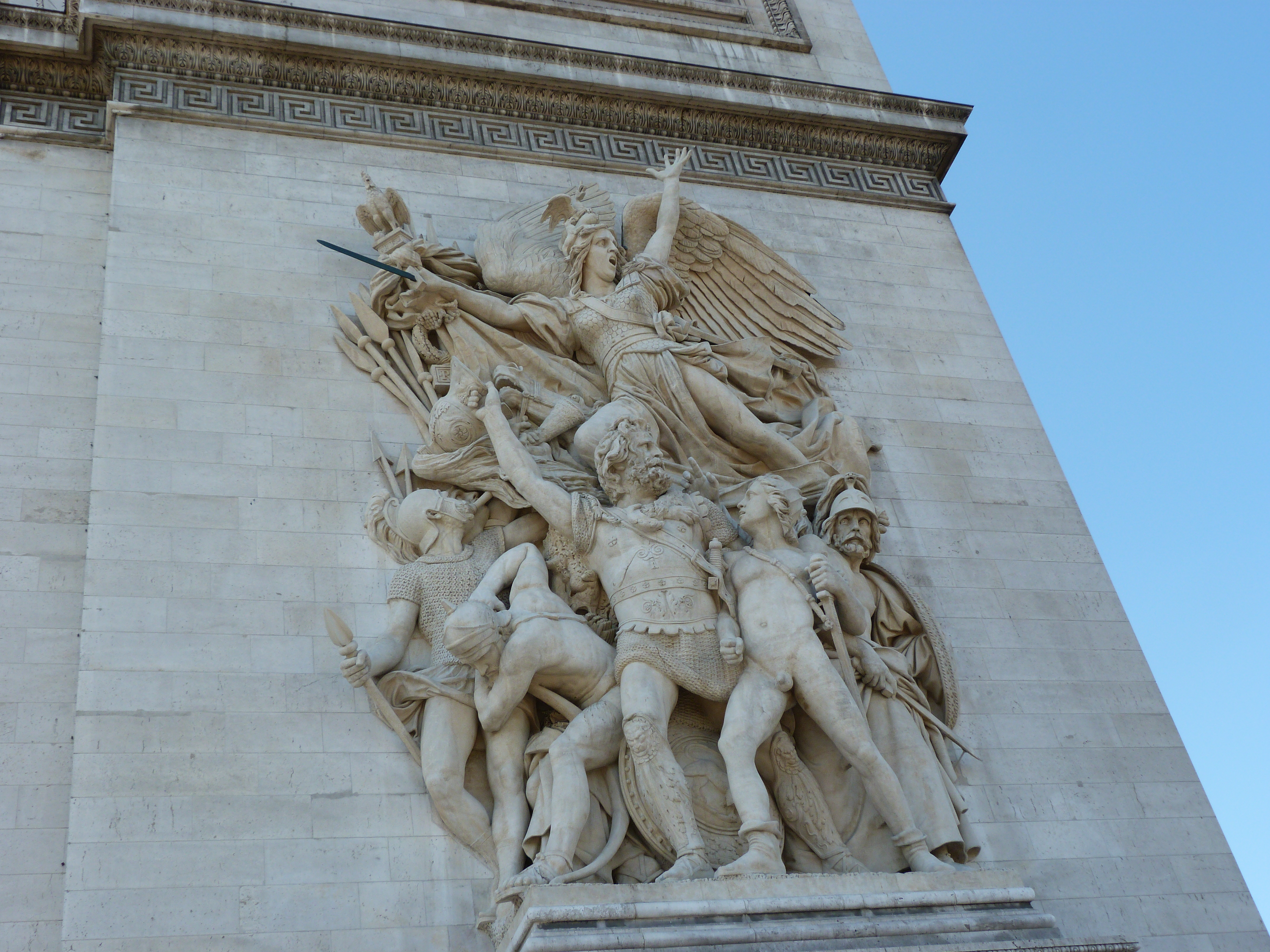 La escultura más famosa del Arco de Triunfo es el grupo escultórico en alto relieve “La Partida de los Voluntarios de 1792”, también conocido como “La Marsellesa”, que representa una alegoría de la República Francesa. También hay muchas otras esculturas que representan personajes históricos y mitológicos.