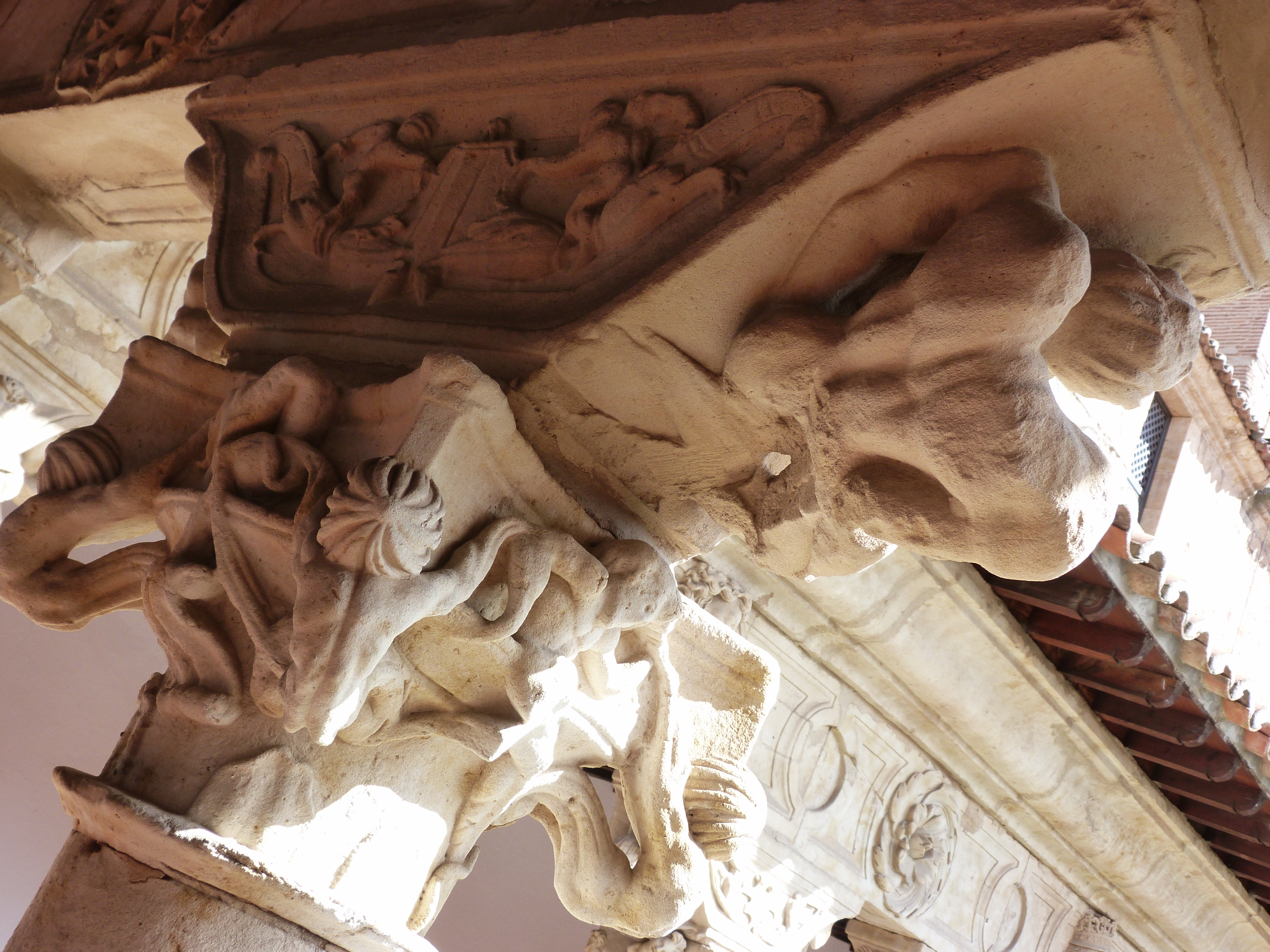 Escultura de un capitel del claustro del convento de las Dueñas en Salamanca.
