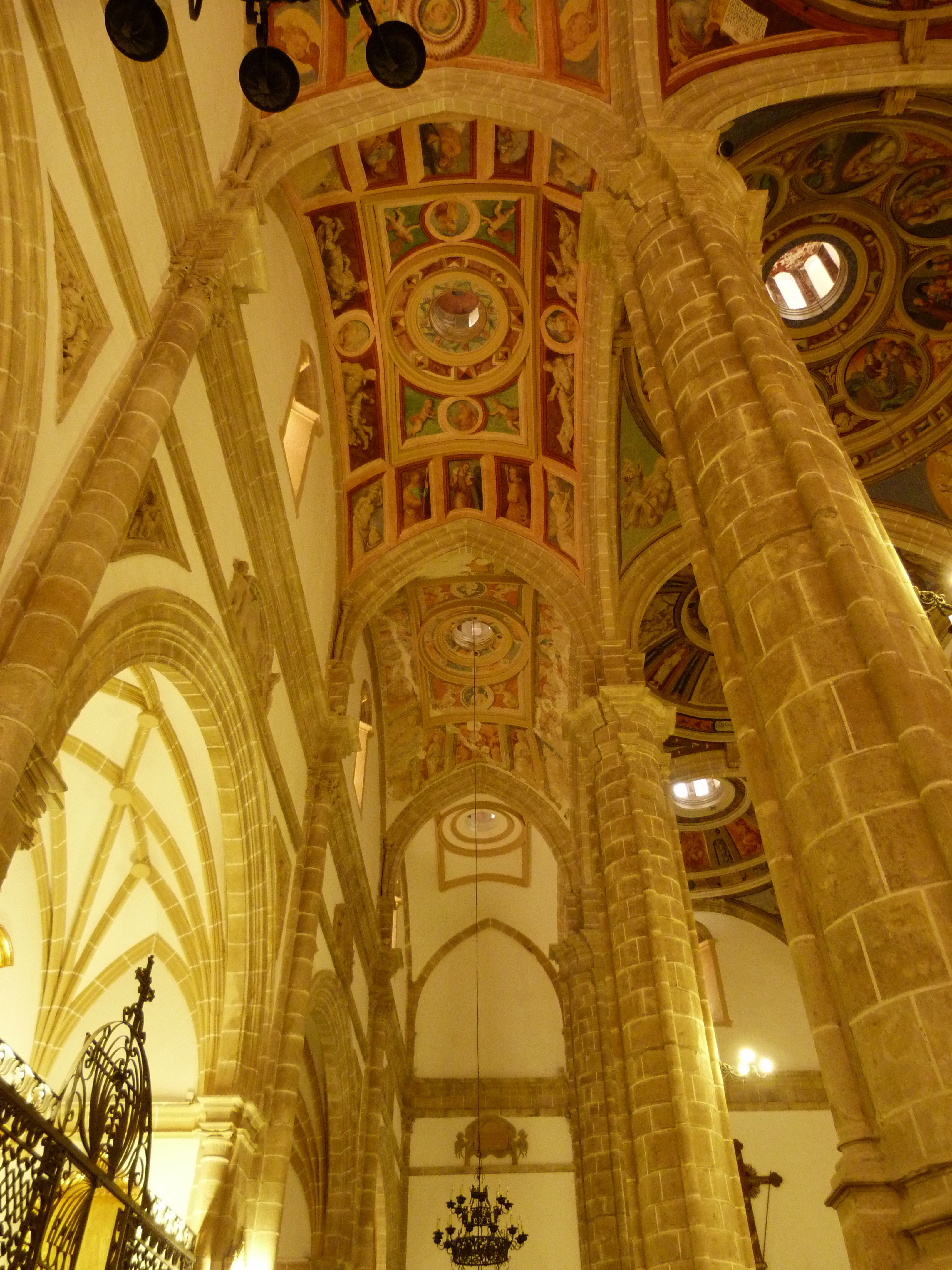 El espacio interior es de planta basilical con tres naves. Pilares cilíndricos y columnas adosadas dividen las naves. La nave central está cubierta por cúpulas de media naranja con linternas sobre pechinas, mientras que las laterales tienen bóvedas vaídas rectangulares. Capillas-hornacinas se abren entre los contrafuertes en los muros laterales.