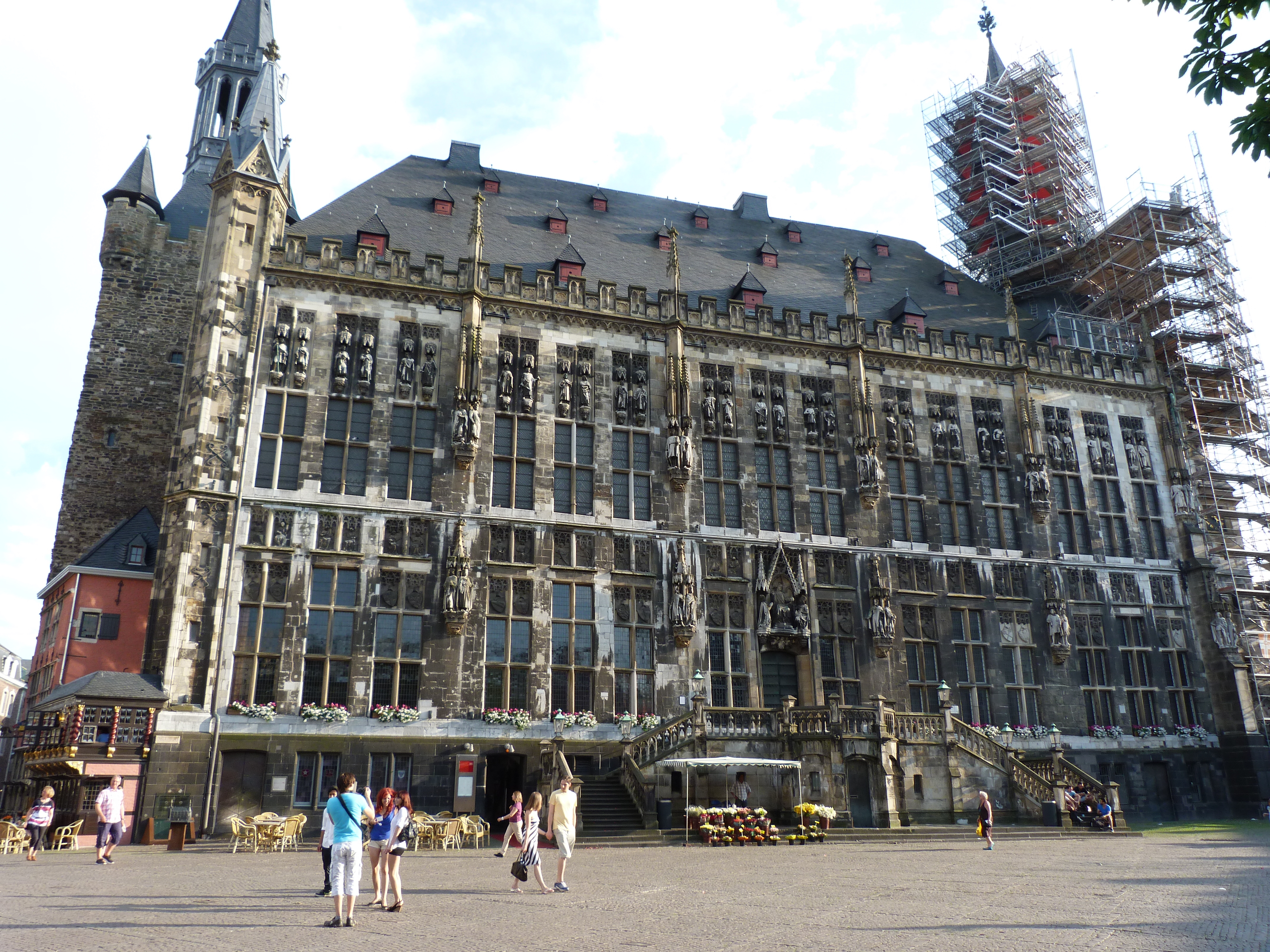 Ayuntamiento de Aquisgrán. Ciudad también conocida como Baños de Aquisgrán, es una ciudad en el distrito gubernamental de Colonia en Renania del Norte-Westfalia (Alemania).
