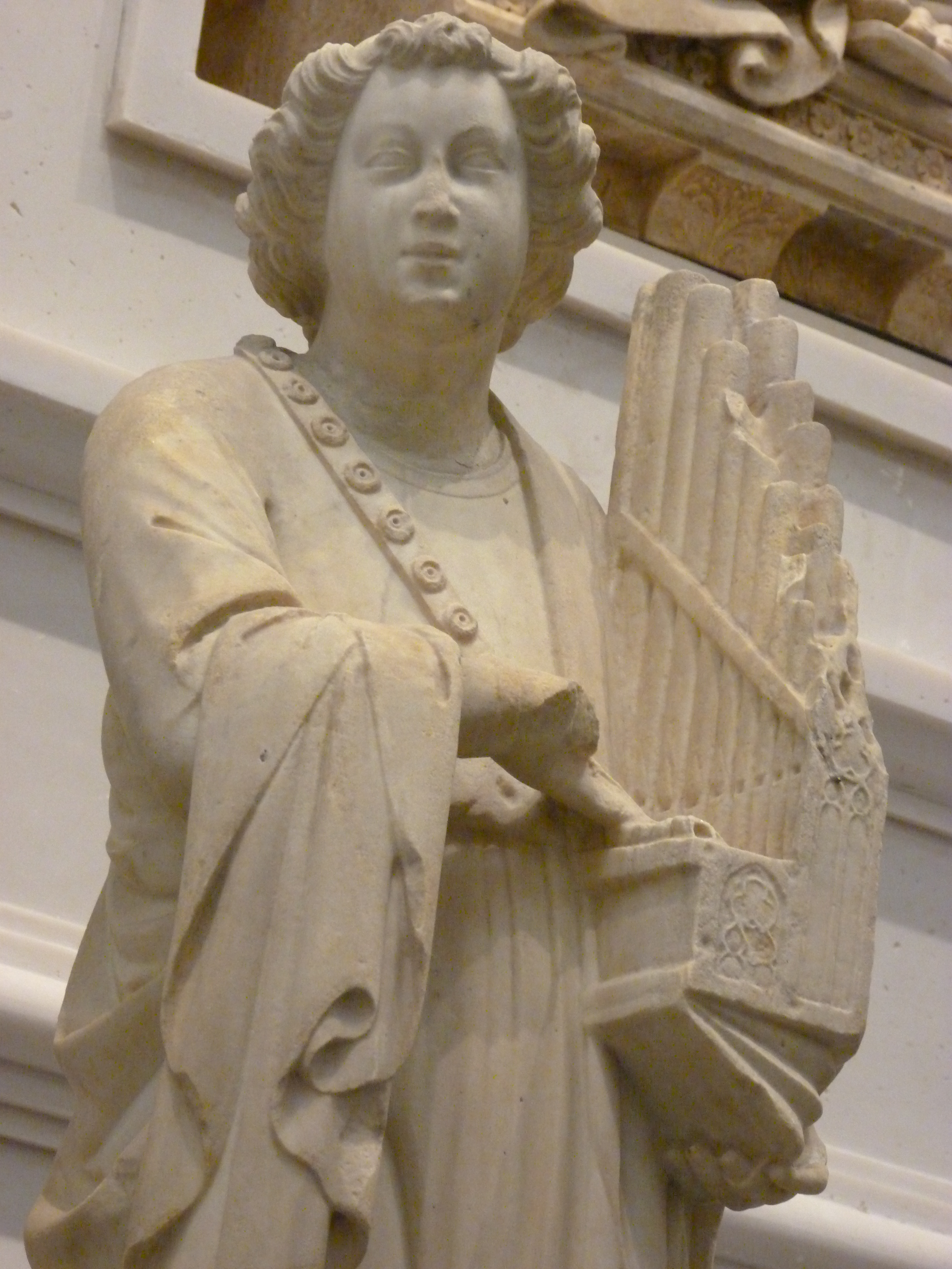 Escultura de un Ángel tocando el arpa en el museo museo dell'Opera del Duomo (Florencia).