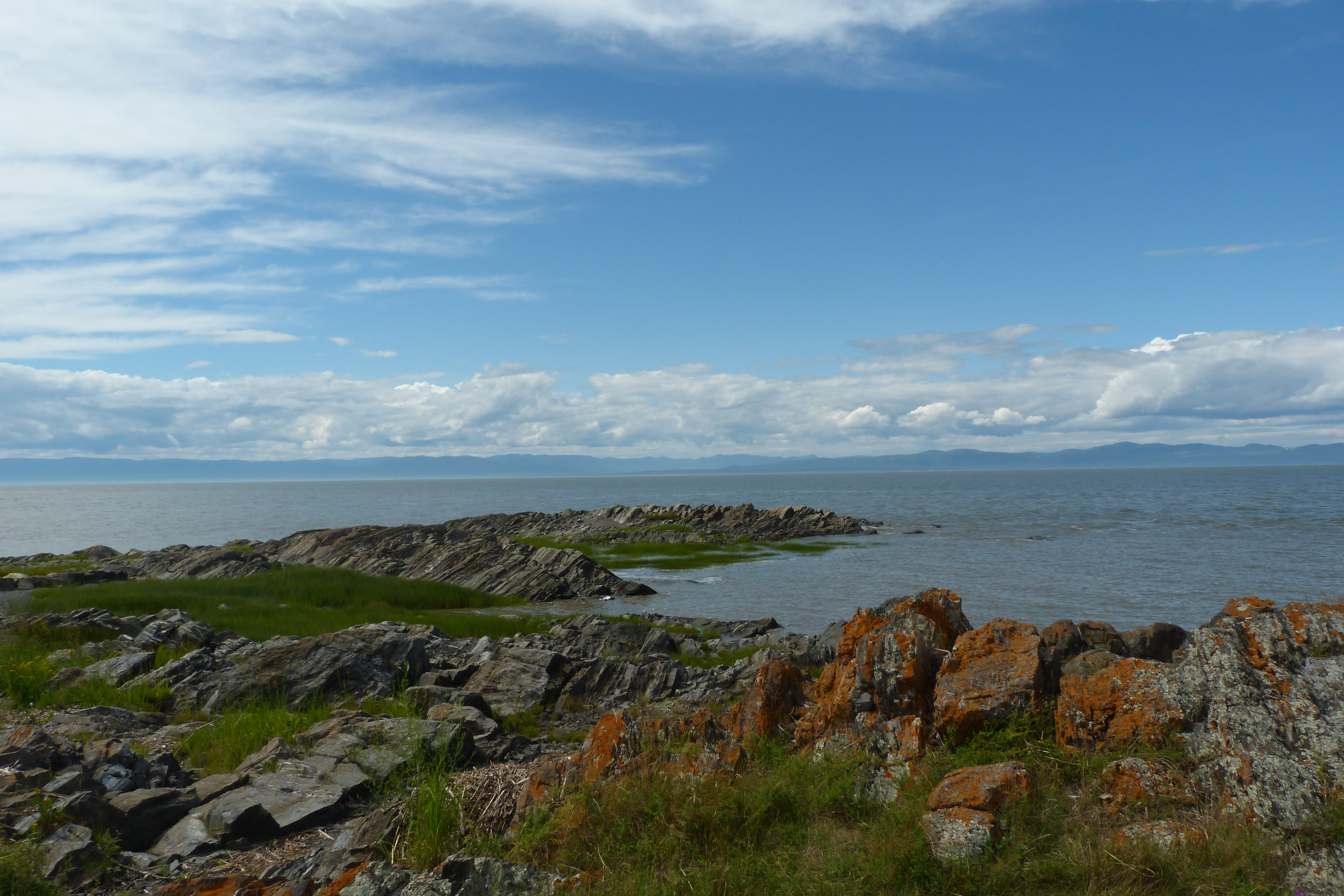 Vista del rio San Lorenzo a su paso por Quebec. Es uno de los principales ríos de Norteamérica, el colector de los Grandes Lagos que conecta con el océano Atlántico, en el golfo de San Lorenzo. En su primer tramo forma la frontera natural entre Estados Unidos y Canadá, bordeando el oeste de la provincia de Ontario, y luego se adentra en Quebec atravesándolo totalmente. Pertenece al sistema lacustre de Lawrence.