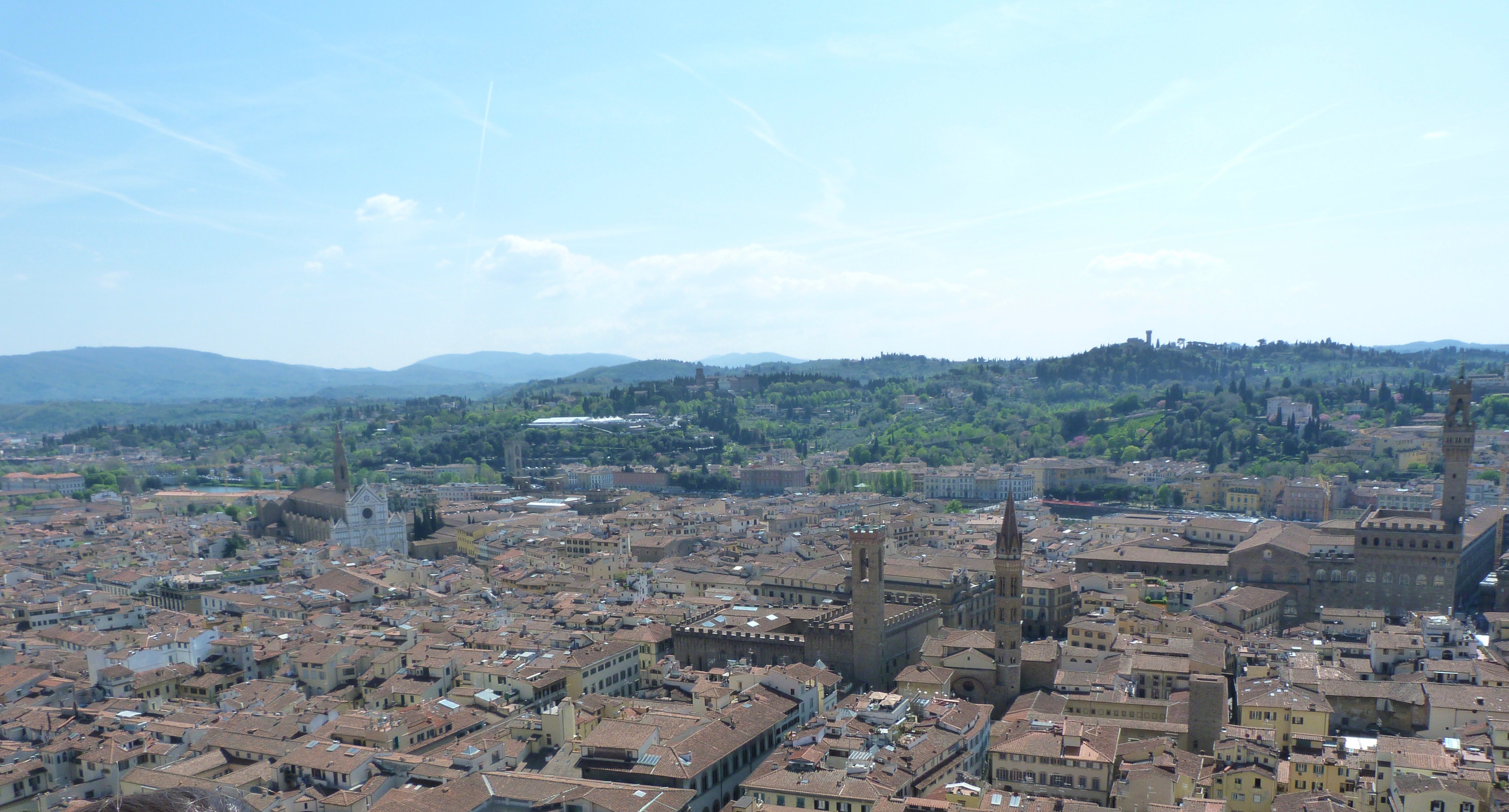 Vista de la ciudad de Florencia desde la cúpula de Santa Maria del Fiore en la que se aprecian la iglesia de Santa Croce, el Bargello y la plaza de la Signoria entre otras cosas.