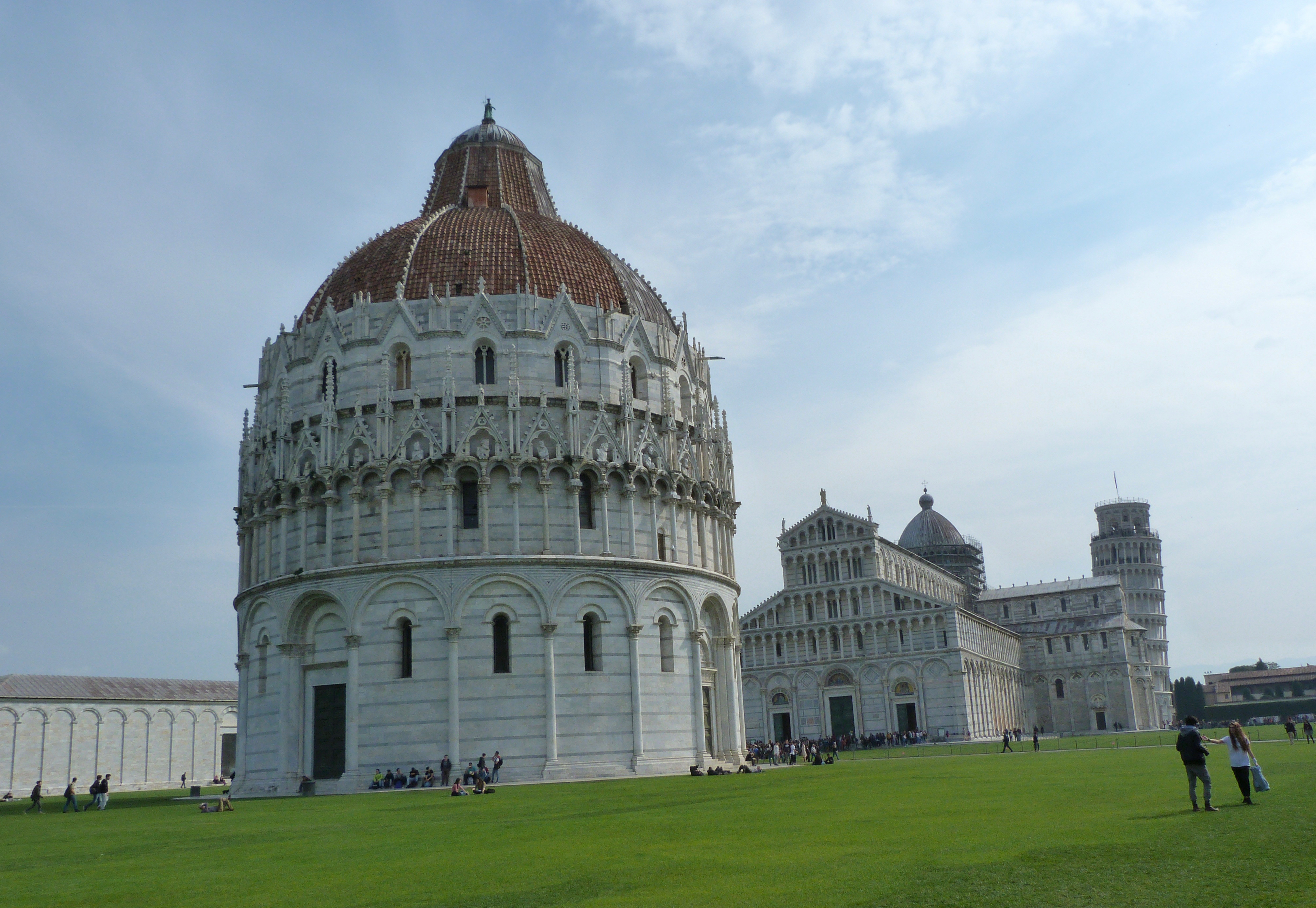 El Baptisterio de Pisa, dedicado a San Juan el Bautista, está frente a la catedral en el extremo occidental de la Piazza dei Miracoli. Comenzó a construirse en el año 1152, y fue concluido en el 1363. Es el ejemplo de baptisterio independiente más reconocido del mundo. En 1987, el conjunto patrimonial de la plaza fue declarado Patrimonio de la Humanidad por la Unesco.