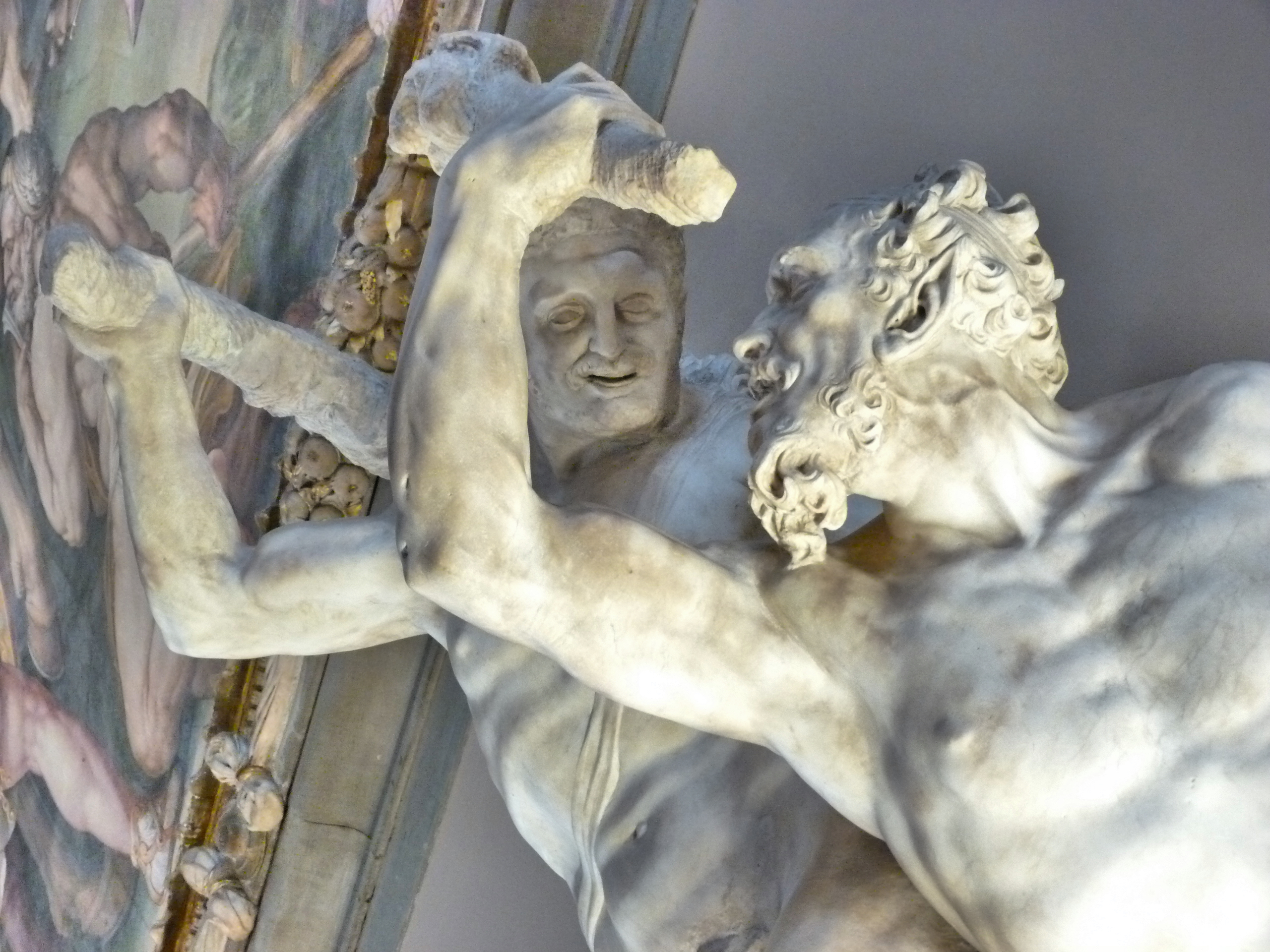 Uno de los grupos escultóricos de Rossi sobre Hércules en el salón principal del Palacio Viejo