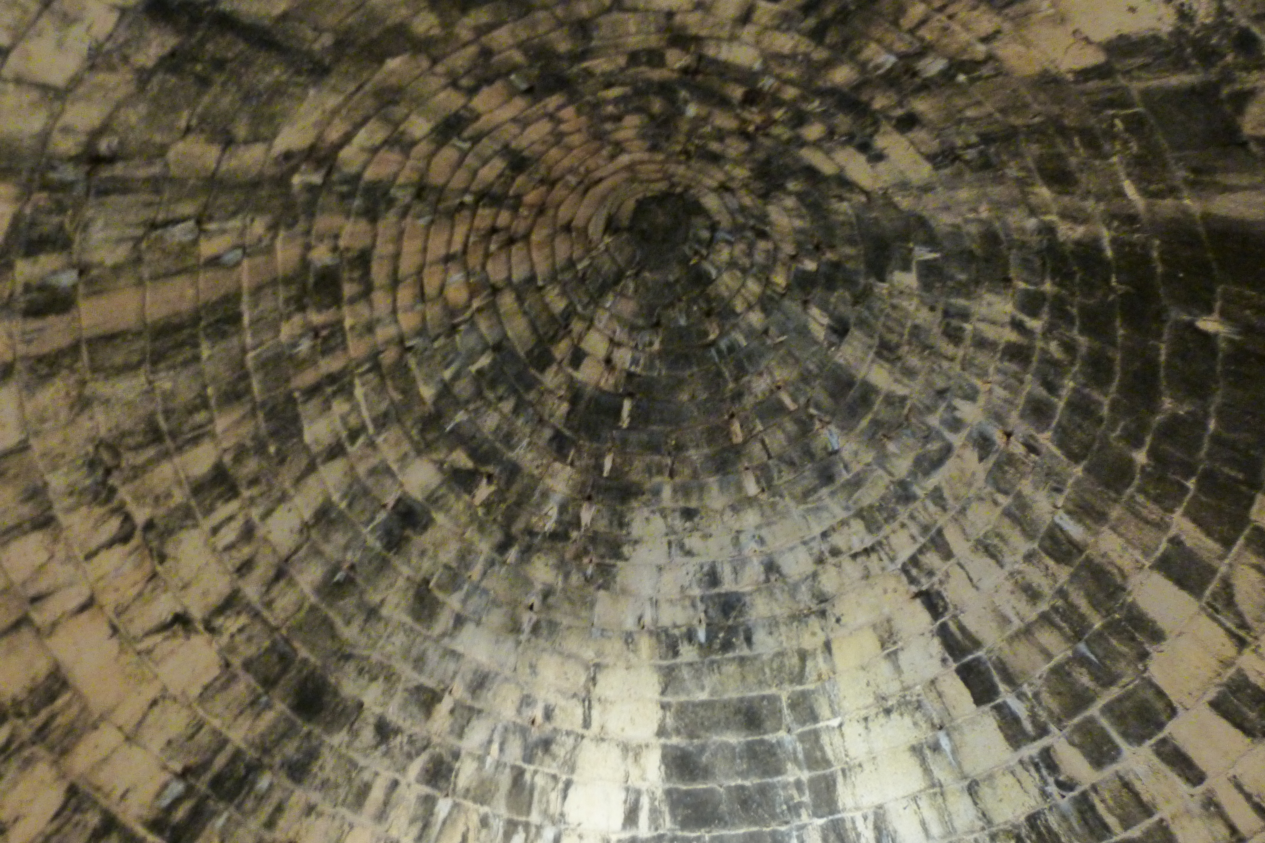 Bóveda de la tumba de Atreo por aproximación de hiladas, en Micenas. Es un tholos de Grecia, una gran tumba localizada en la colina de Panagitsa, a las afueras de Micenas, y construida durante la Edad de Bronce, alrededor de 1250 a. C