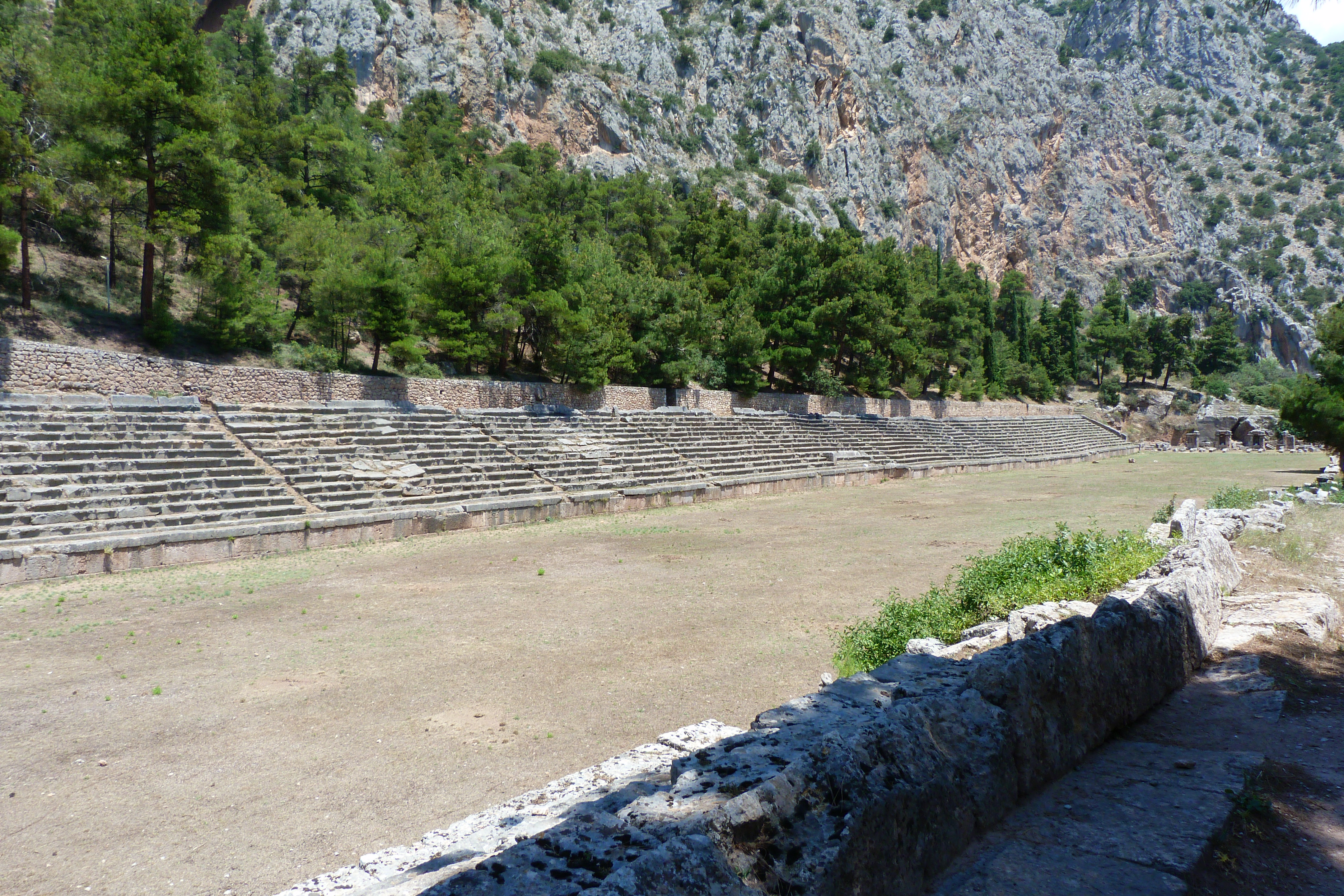 El estadio de Delfos se encuentra en el lugar más alto del sitio arqueológico de Delfos pues está situado a 645 m.Tiene vista al santuario de Apolo y al paisaje délfico. Fue construido o en la segunda mitad del siglo IV a. C. o después de los ataques de Galacia en el 279 a. C. Medía 178 metros de longitud y tuvo varias fases de restauración. Es el estadio antiguo mejor conservado de Grecia.