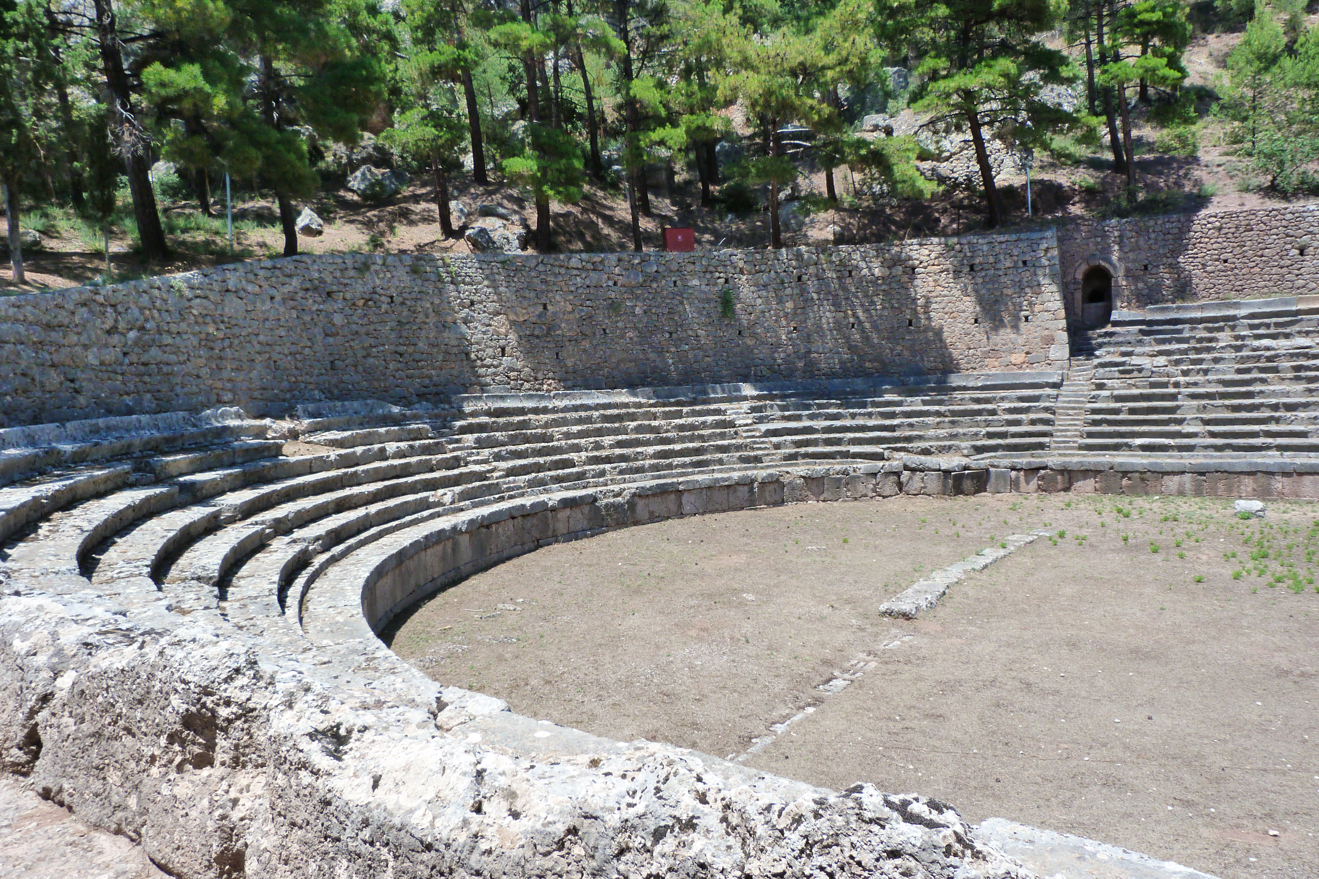 El estadio de Delfos se encuentra en el lugar más alto del sitio arqueológico de Delfos pues está situado a 645 m.Tiene vista al santuario de Apolo y al paisaje délfico. Fue construido o en la segunda mitad del siglo IV a. C. o después de los ataques de Galacia en el 279 a. C. Medía 178 metros de longitud y tuvo varias fases de restauración. Es el estadio antiguo mejor conservado de Grecia.
