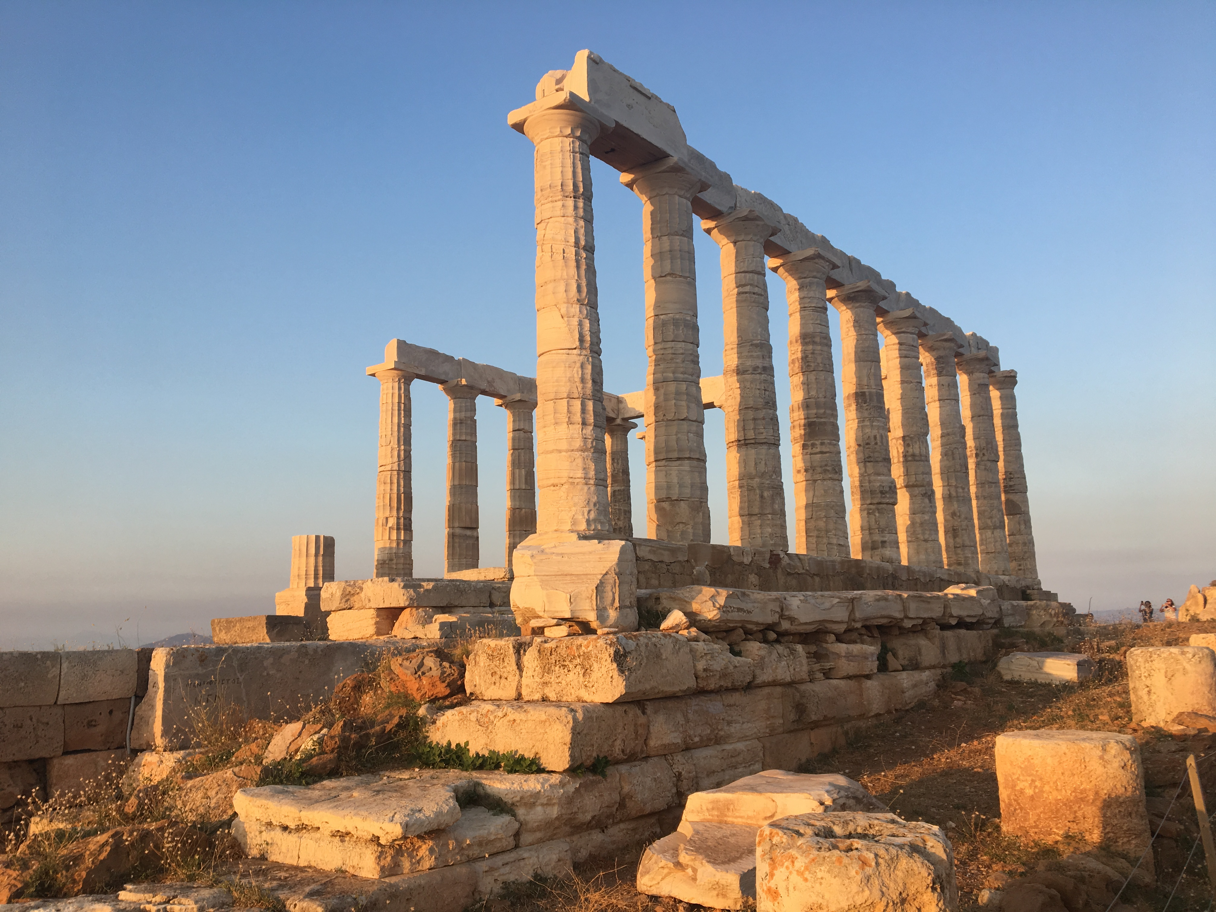 Atardecer en el templo de Poseidón o Neptuno en el cabo Sunio