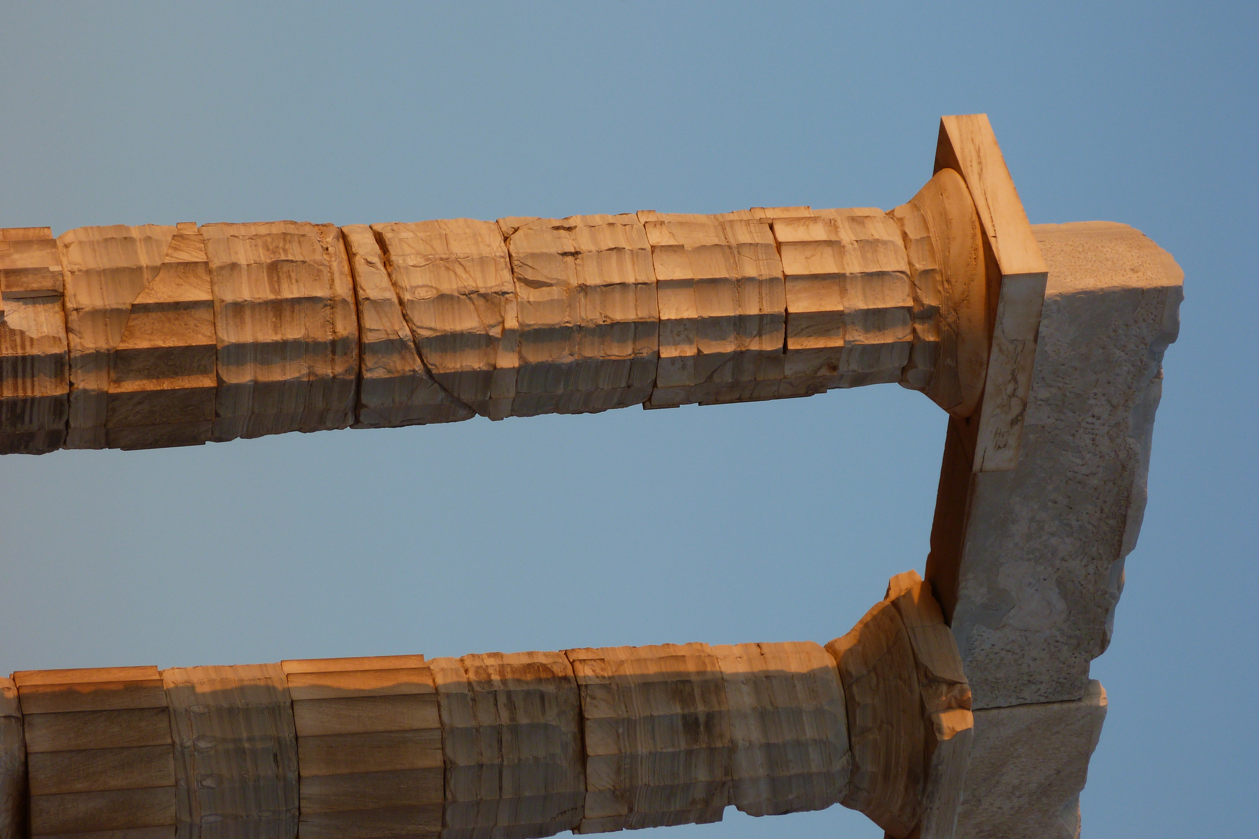 Columnas del Templo de Poseidón. El antiguo templo griego de Poseidón en el cabo Sunio, construido entre 444–440 a. C., es uno de los principales monumentos de la Edad de Oro de Atenas. Se alza sobre el mar a una altura de casi 60 m.