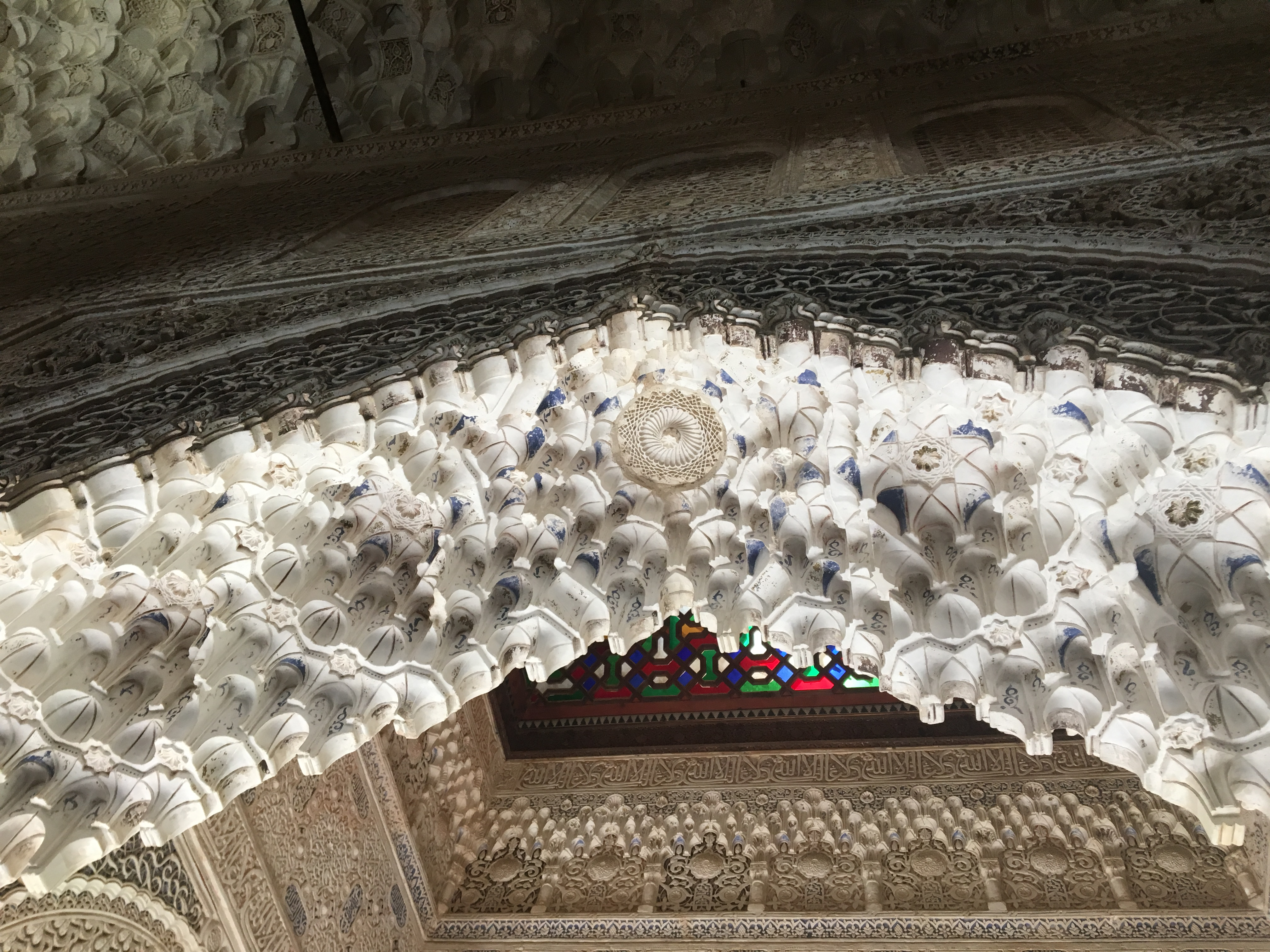 Intradós de arco en la Alhambra con mocárabes en Granada.