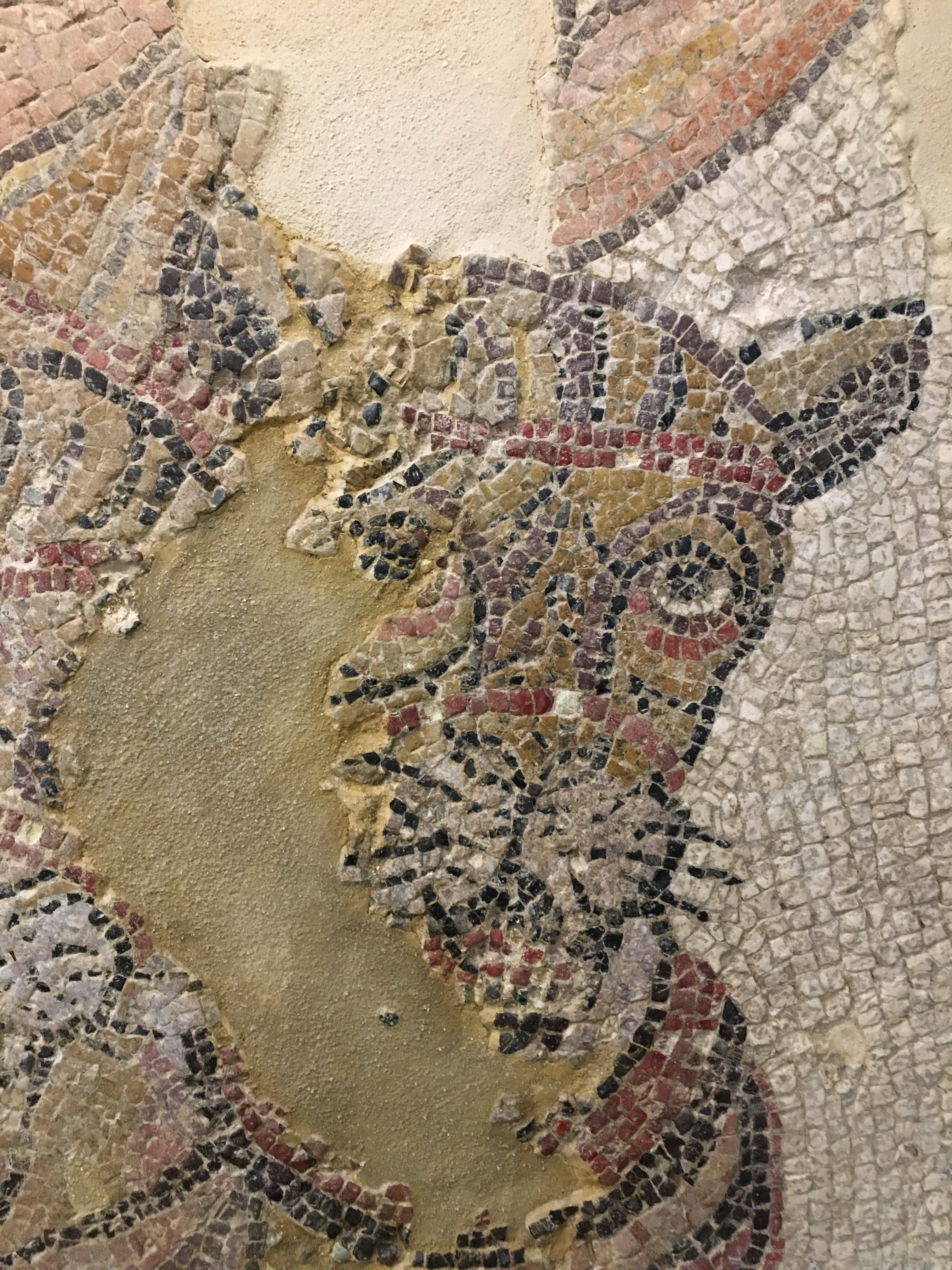 Detalle de mosaico figurativo romano en el museo arqueológico de Cabra