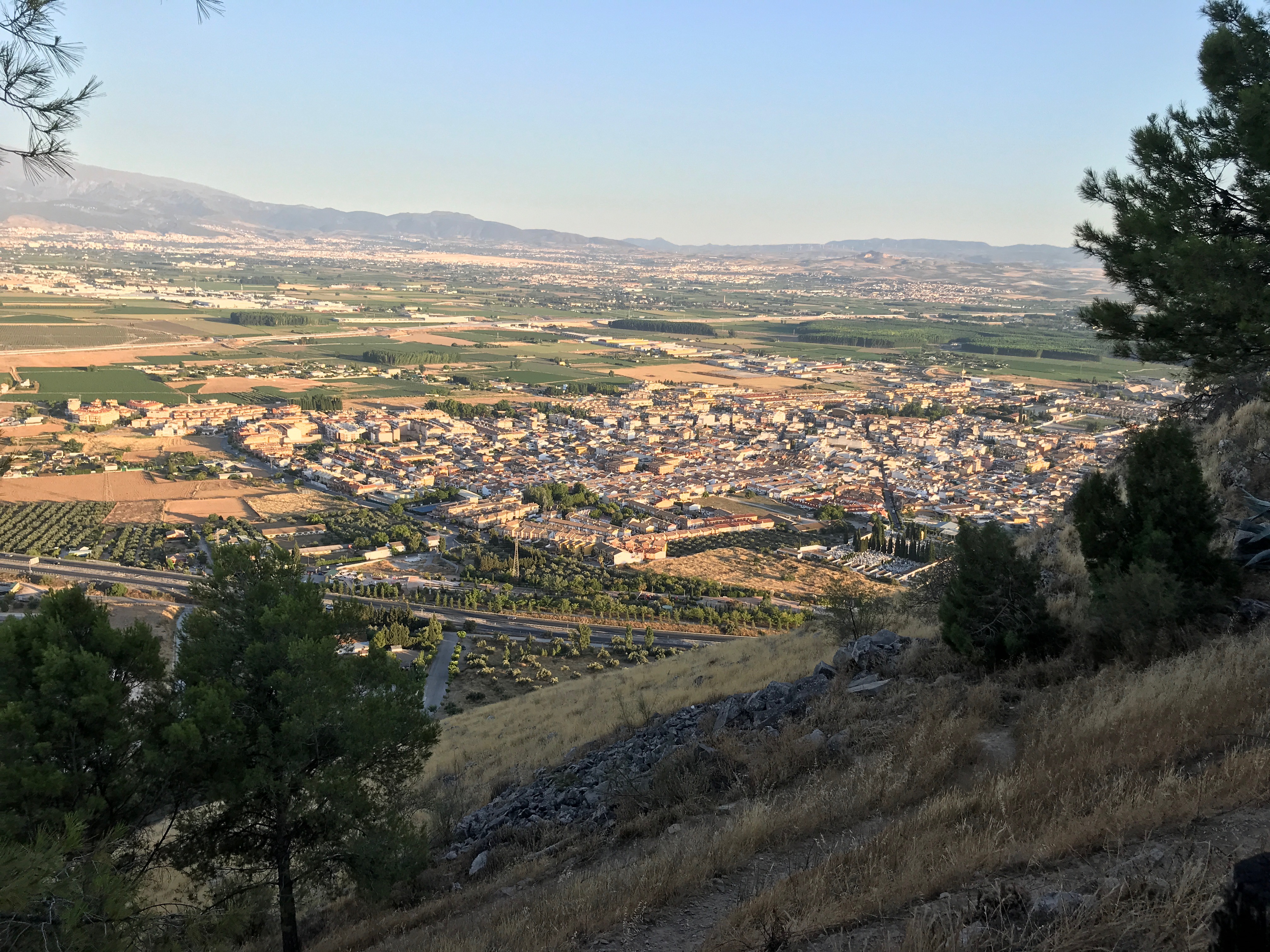 Vista parcial De la Vega de Granada con Sierra Nevada al fondo y el municipio de Atarfe en primer plano