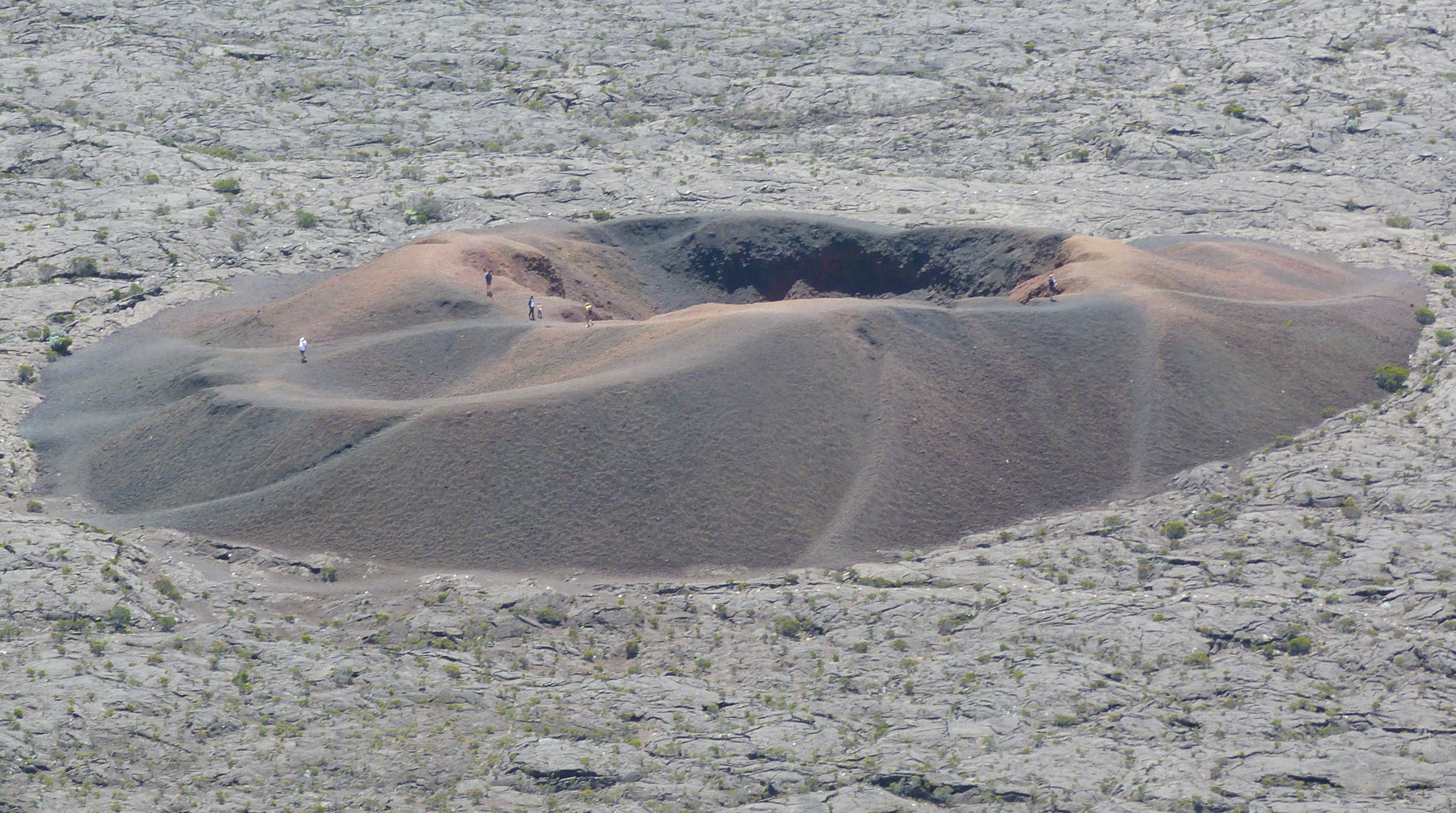 Pitón de La Fournaise, uno de los volcanes más activos del mundo. La mayoría de las erupciones suceden dentro de lo que se conoce como "la caldera" y no representan amenaza alguna.