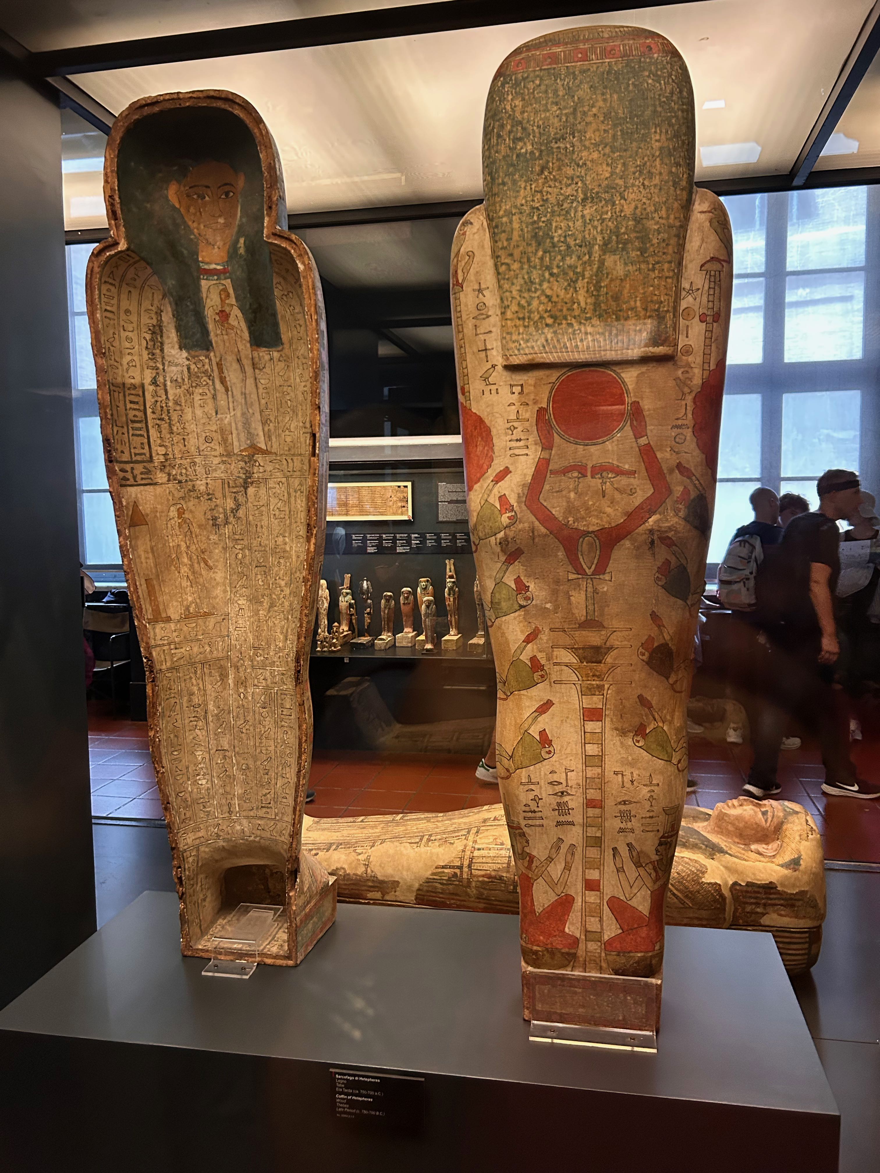 Sarcófagos egipcios en el museo vaticano. En el interior pueden observarse jeroglíficos.