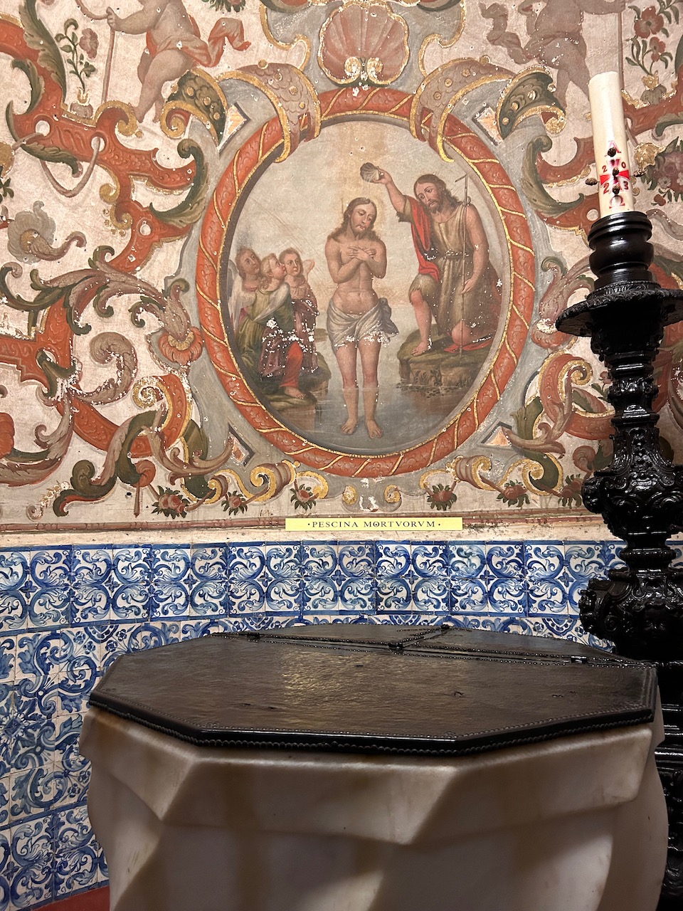 Pila bautismal en el templo católico Basílica Catedral de Évora