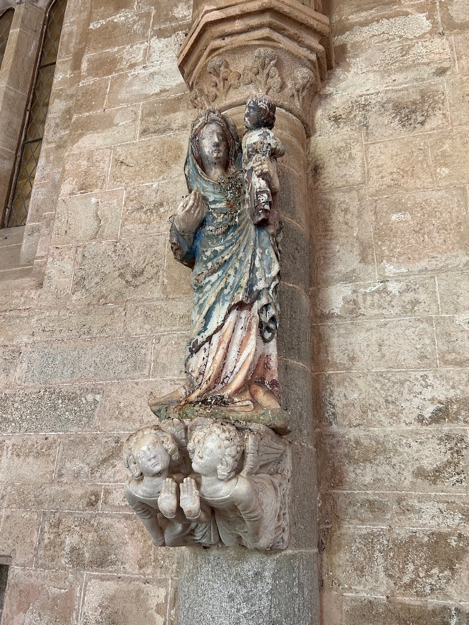 Virgen con niño policromada en la capilla del claustro de la Catedral de Évora.