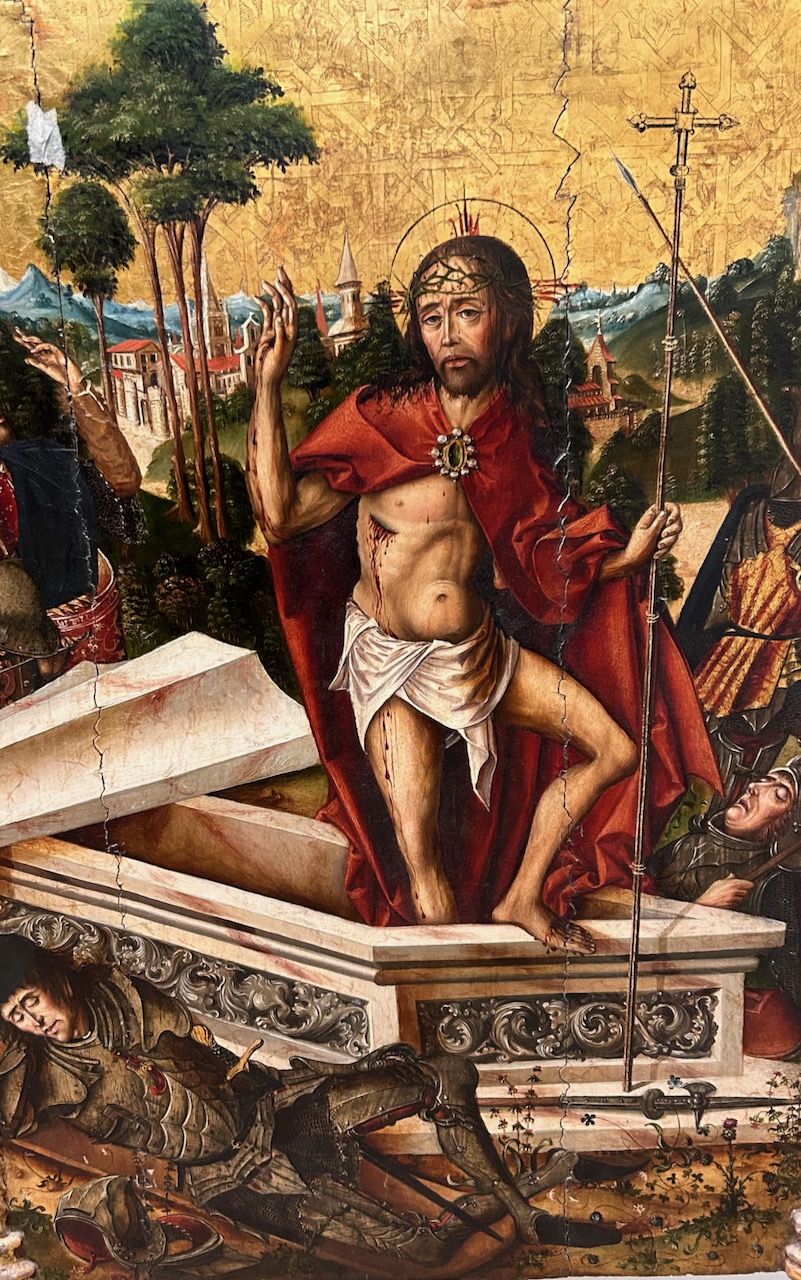 Detalle del retablo de Santa Marina expuesto en el Museo de Bellas Artes de Asturias en Oviedo. Imagen resurrección de Jesús.
