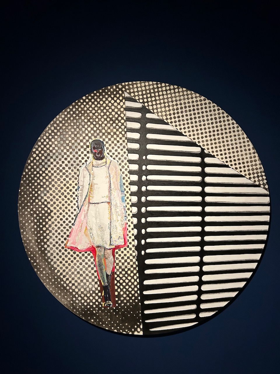 Cuadro de formato circular elaborado con técnica mixta sobre lienzo de la artista española Victoria Civera Redondo. Forma parte de la exposición "El tiempo es circular en el silencio" en el Museo Patio Herreriano de Valladolid.