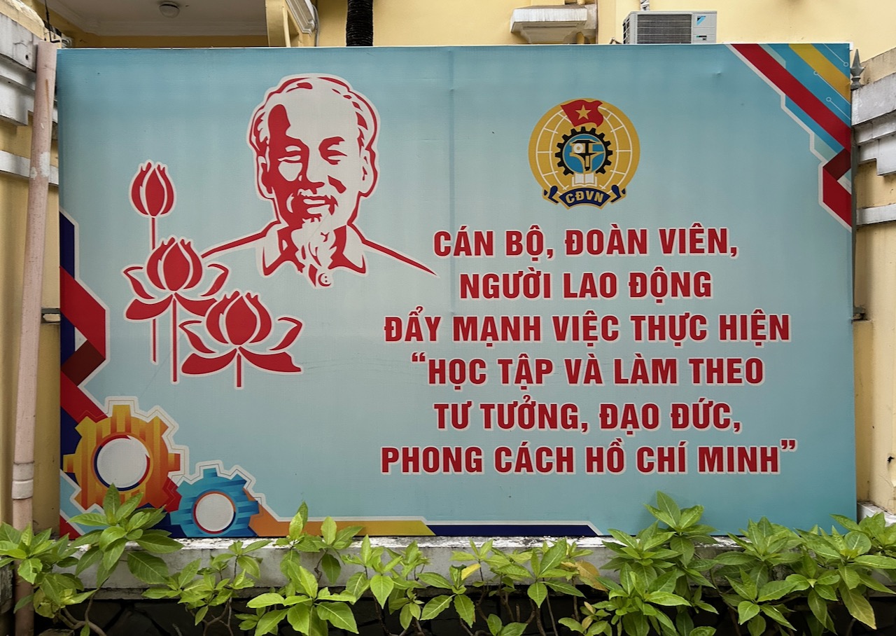Cartel de propaganda comunista en las calles de la ciudad vietnamita de Ho Chi Minh que recoge el pensamiento del líder comunista del país