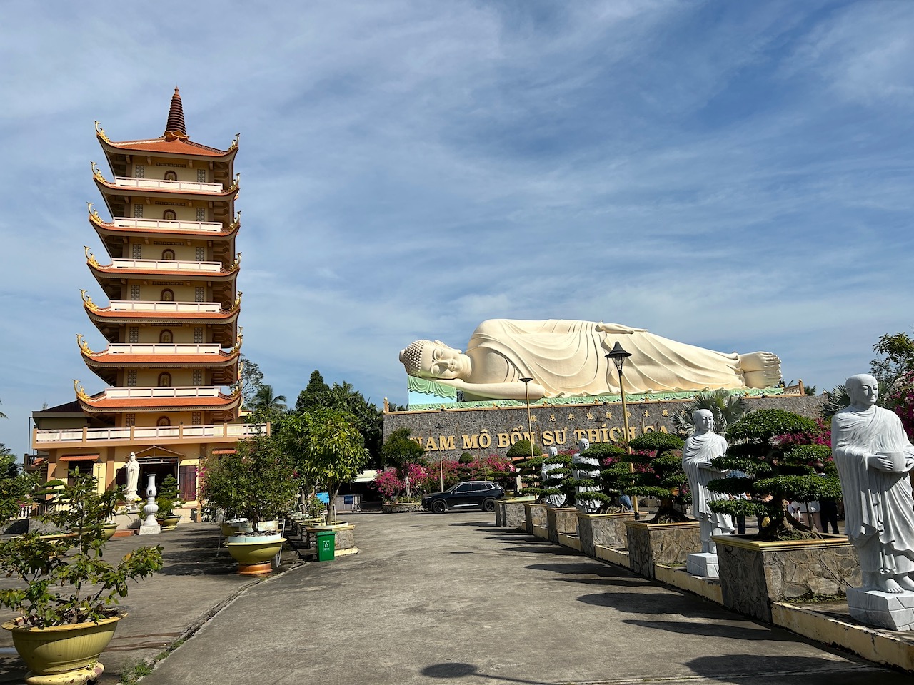 Entre las múltiples representaciones que hay de Buda, en la imagen observamos la del Buda yacente o tumbado, en la pagada del mismo nombre, a tamaño gigantesco.