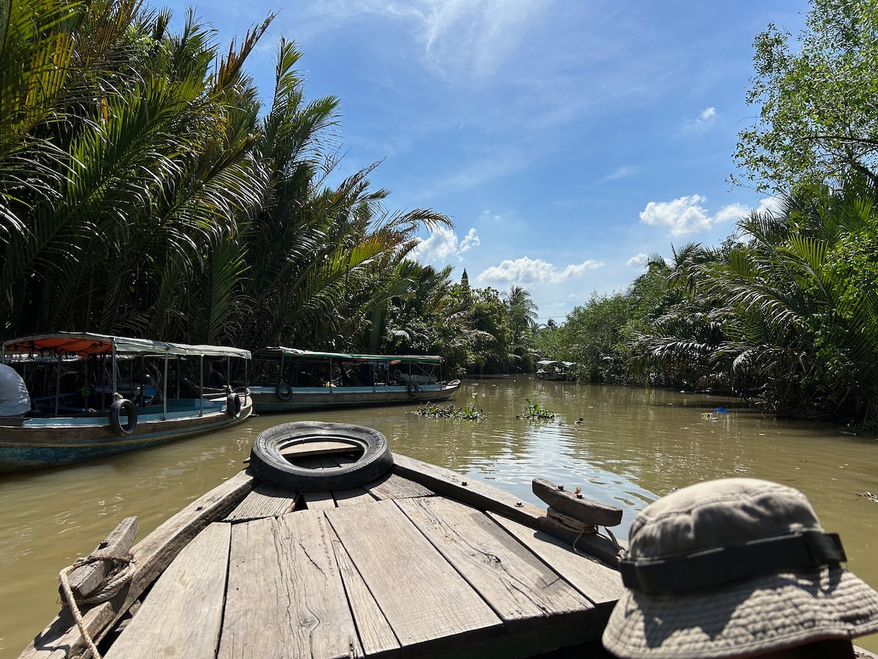 El delta del Mekong fue la ultima región del actual Vietnam en ser anexionada y colonizada por los Vietnamitas. Embarcaciones de todo tipo lo recorren cada día entre canales y estrechos brazos del Río que dividen múltiples islas de vegetación exuberante , característico del clima tropical de la zona con su vegetación de jungla.