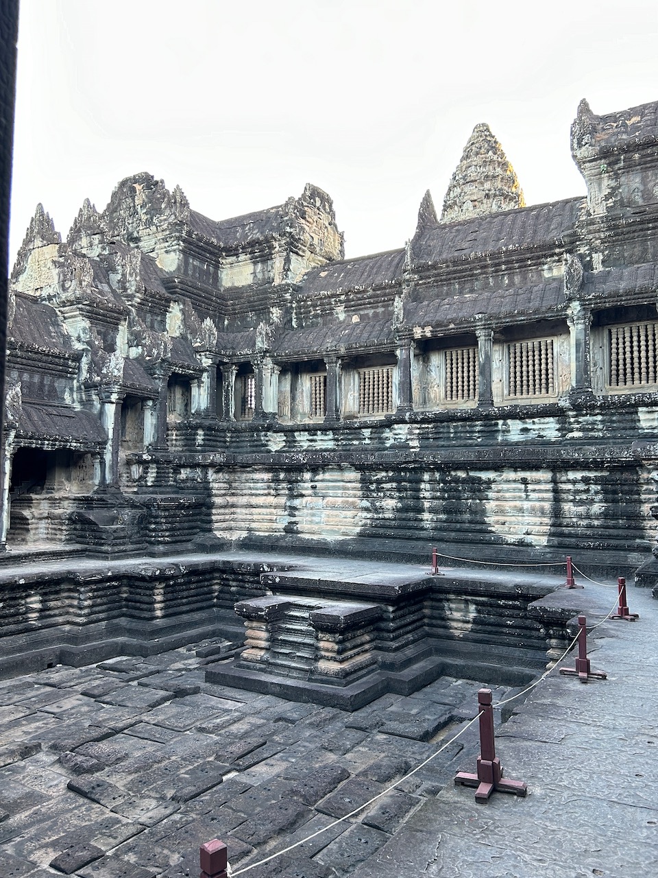 Angkor Wat fue la capital del imperio jemer que floreció aproximadamente entre los siglos IX y XV. Construido por Suryavarman II está rodeado de un amplio foso. Angkor es la representación terrenal del monte Meru, el Olimpo de los hindúes. Monumento único, impresionante mezcla de espiritualidad y simetría que constituye un ejemplo de la devoción de la humanidad por sus dioses.