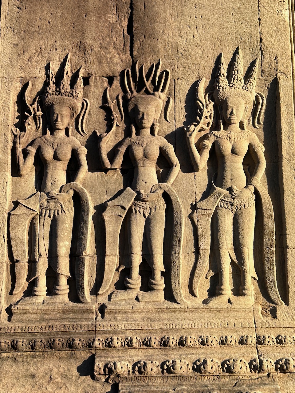 El templo de Angkor Wat es famoso por sus atractivas Apsaras (ninfas celestiales). Hay casi 2000 talladas en las paredes, cada una de ellas única, y lucen 37 tipos de peinados diferentes. Muchas de estas exquisitas tallas han sido dañadas tras siglos de contacto con la orina y los excrementos de los murciélagos.