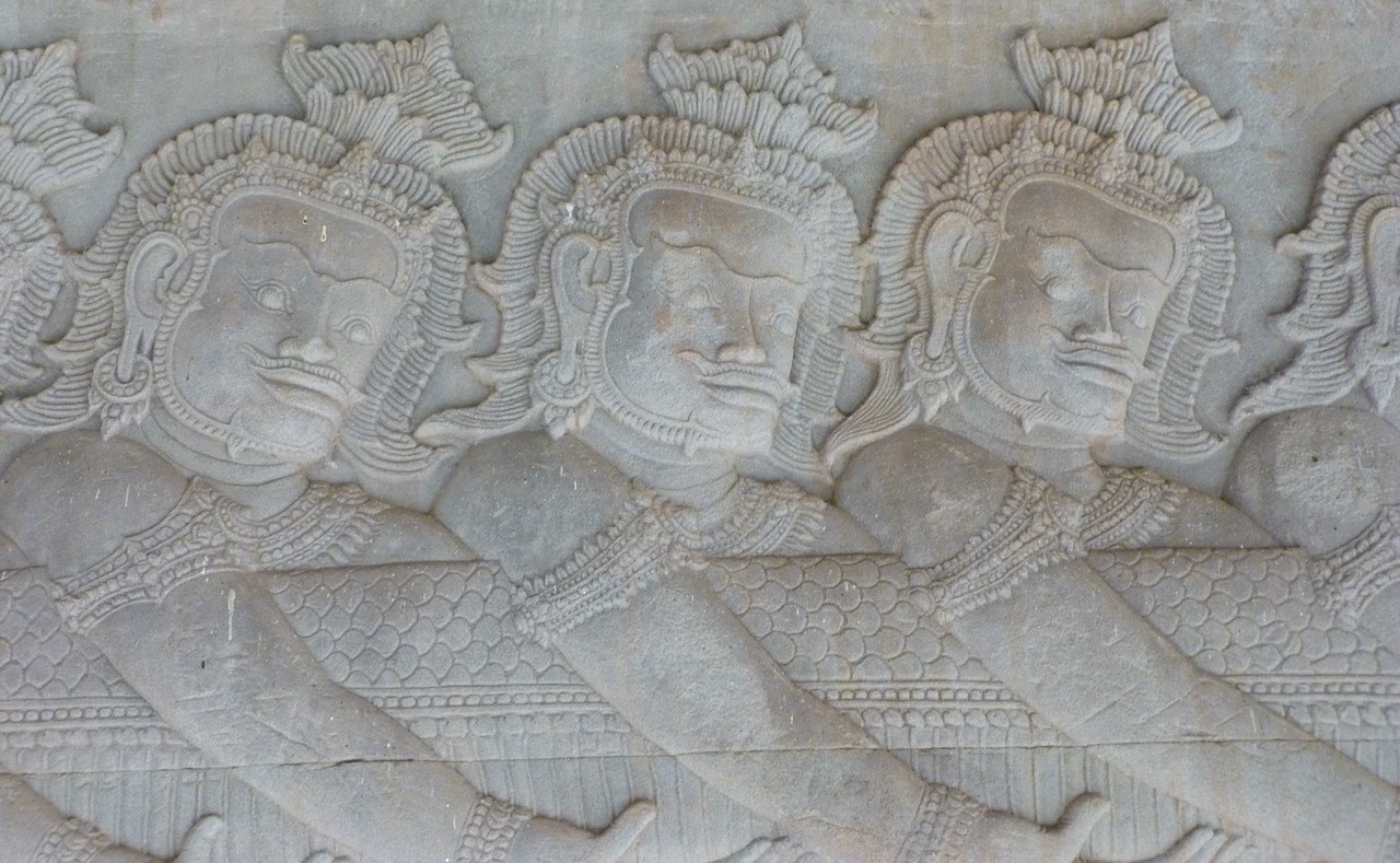 Relieves del Batido del océano de leche en Angkor Wat