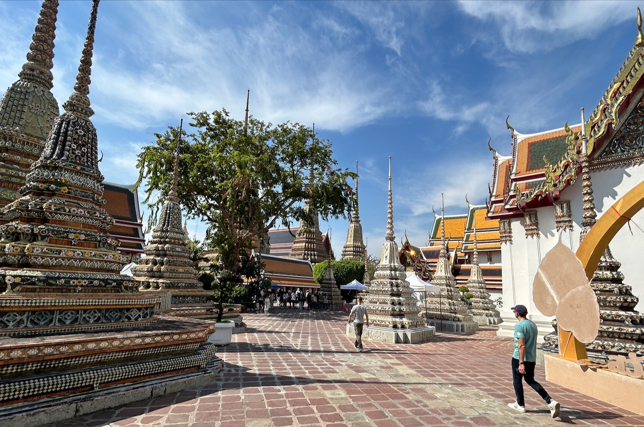 Situado justo al sur del Wat Phra Kaew, Wat Pho o Wat Phra Chetuphon, que es en realidad su nombre oficial, es el templo más antiguo de Bangkok. Su fundación data del siglo XVI, aunque fue Rama I quien le dio su importancia partir de 1782. Cincuenta años después, Rama III organizó en los parterres del templo una universidad. Pero, sobre todo, es conocido por su Buda reclinado de 46 metros de longitud.