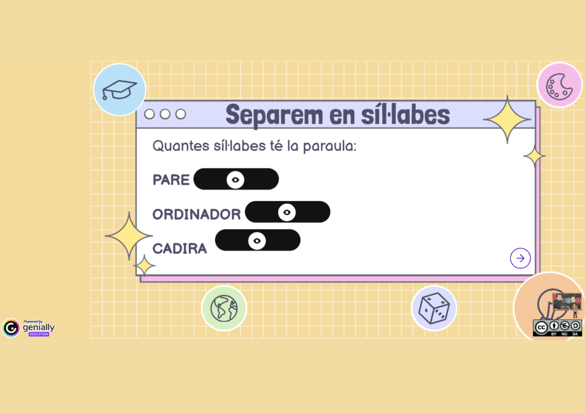 Se trata de una presentación interactiva para iniciar al alumnado en los hiatos y diptongos (en valenciano). Además, al final incluye un breve juego interactivo, en el que mover la lupa para encontrar palabras, que de forma (grupal o individual) podrán ir clasificando, para comprobar así si han adquirido el aprendizaje.