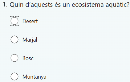 Aquest qüestionari posa a prova els coneixements sobre els ecosistemes, la seua classificació i els éssers vius que els habiten.