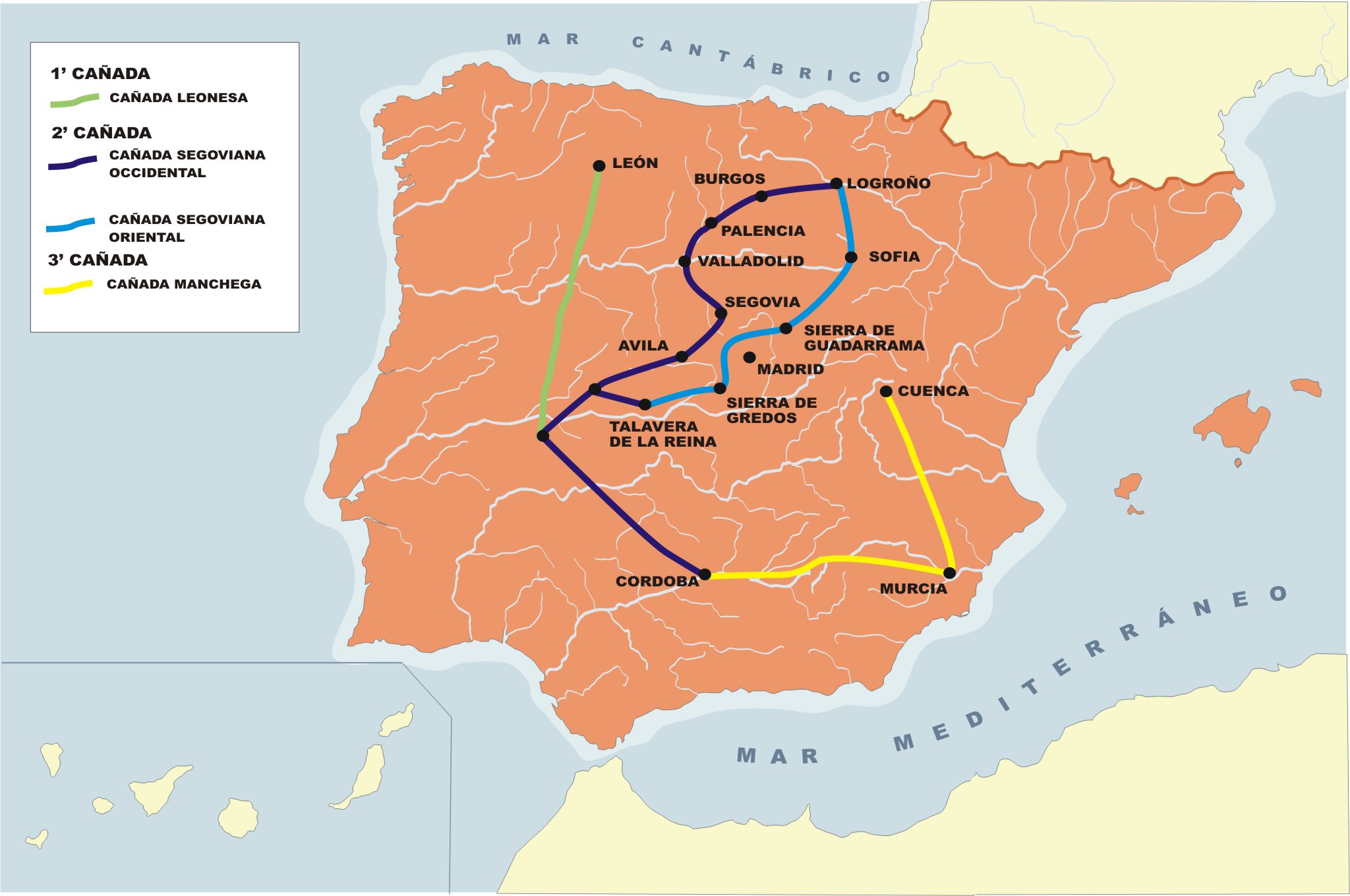 Mapa de las Cañadas de la Península Ibérica en la Edad Media