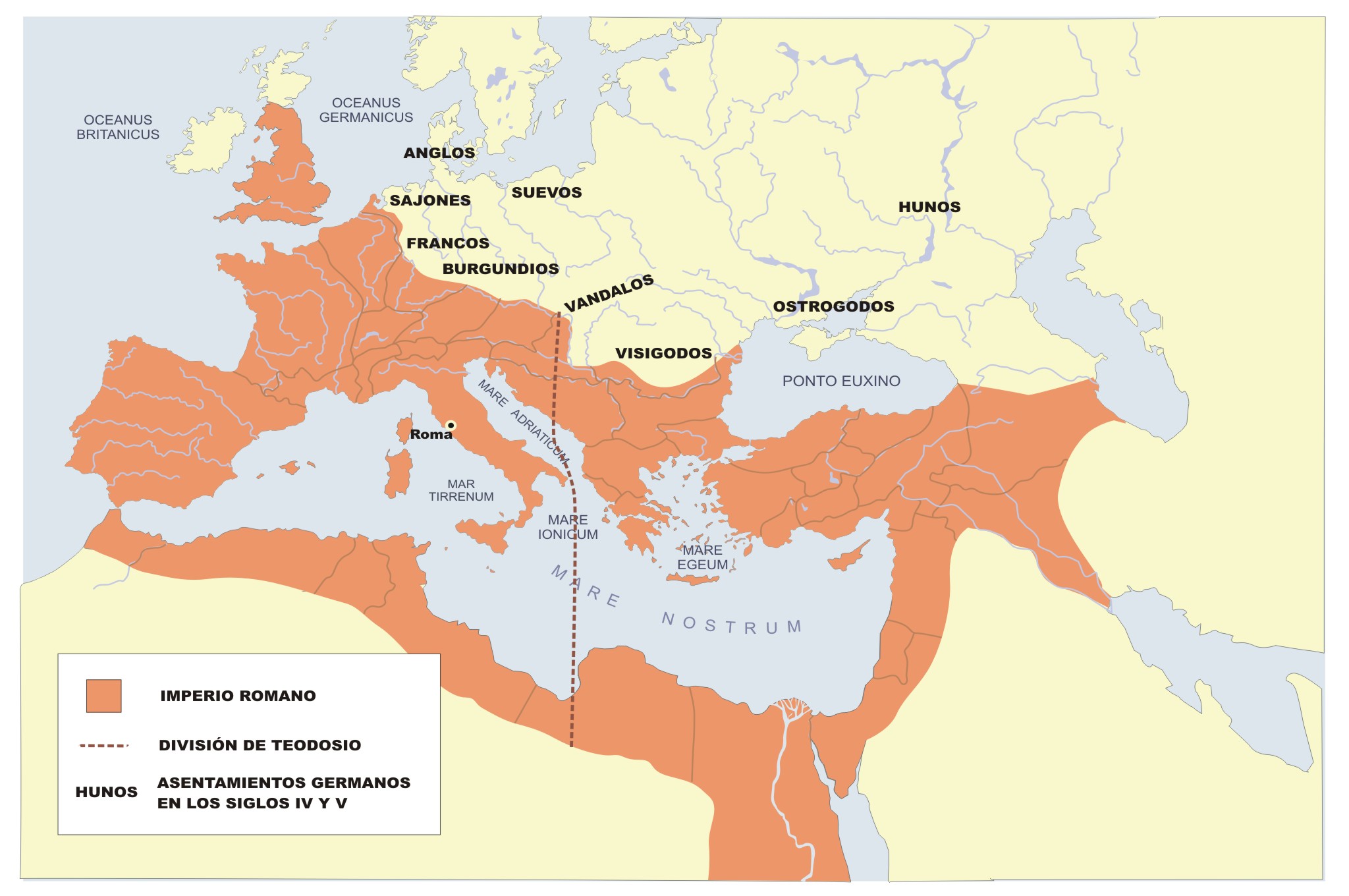 Mapa de los asentamientos bárbaros en los siglos IV y V