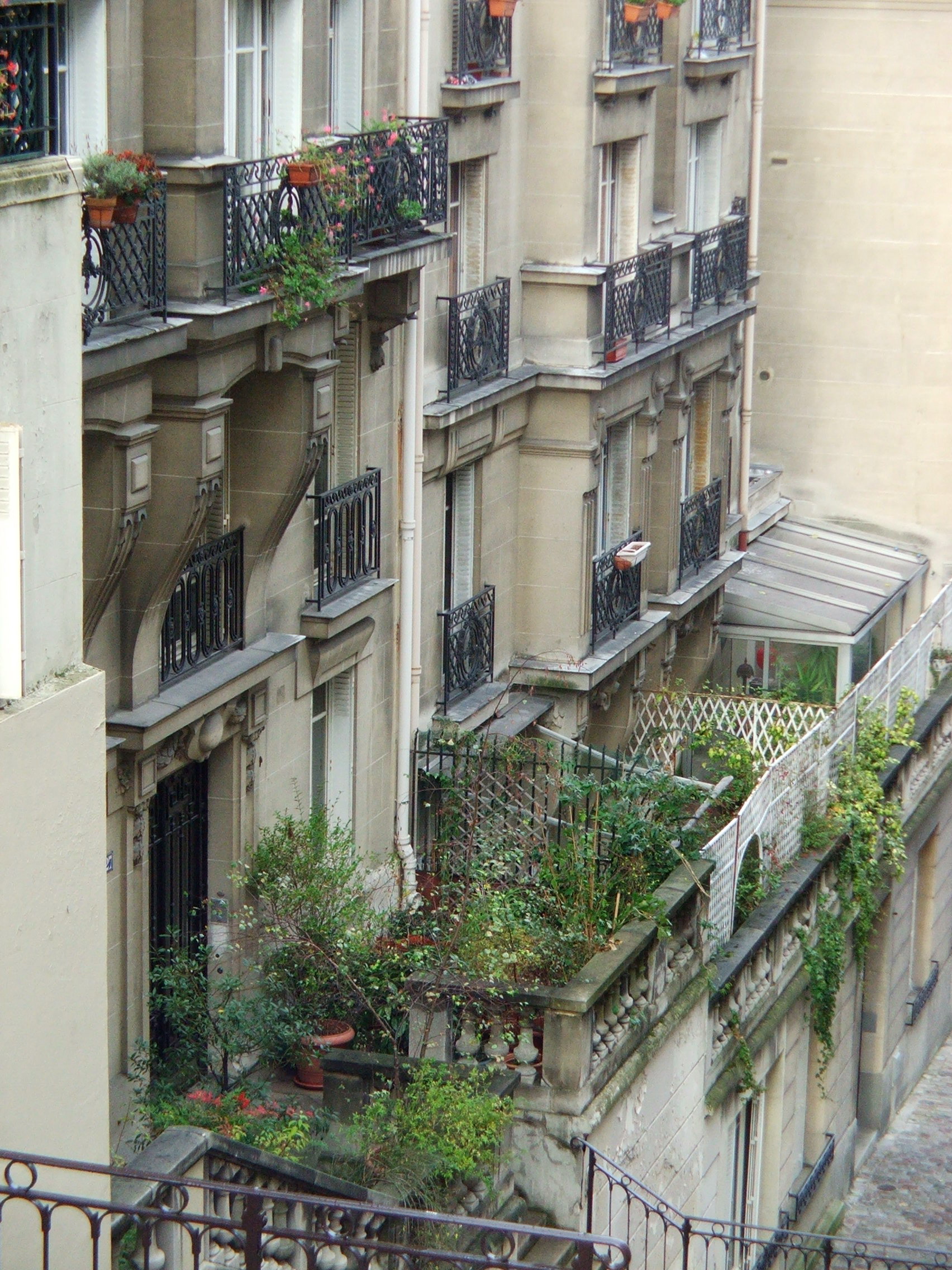Terraza de una casa con plantas, París, Francia
