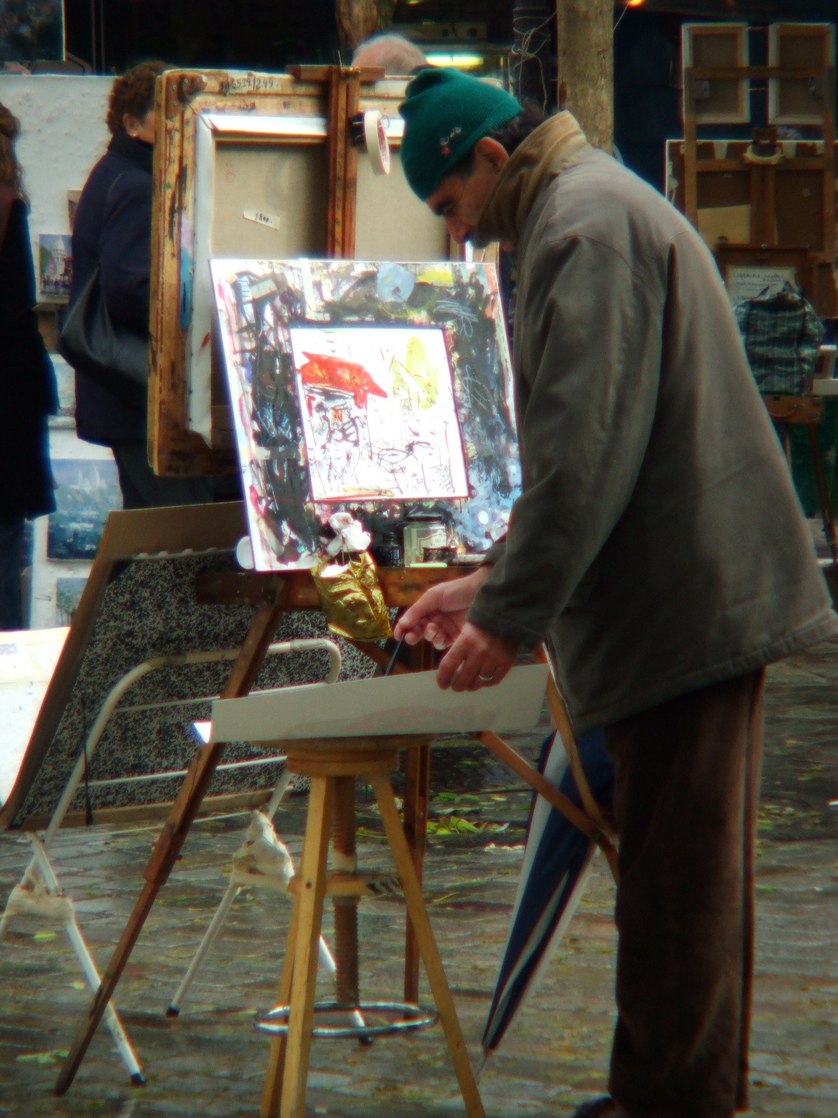 Artista trabajando en un mercadillo de arte, París