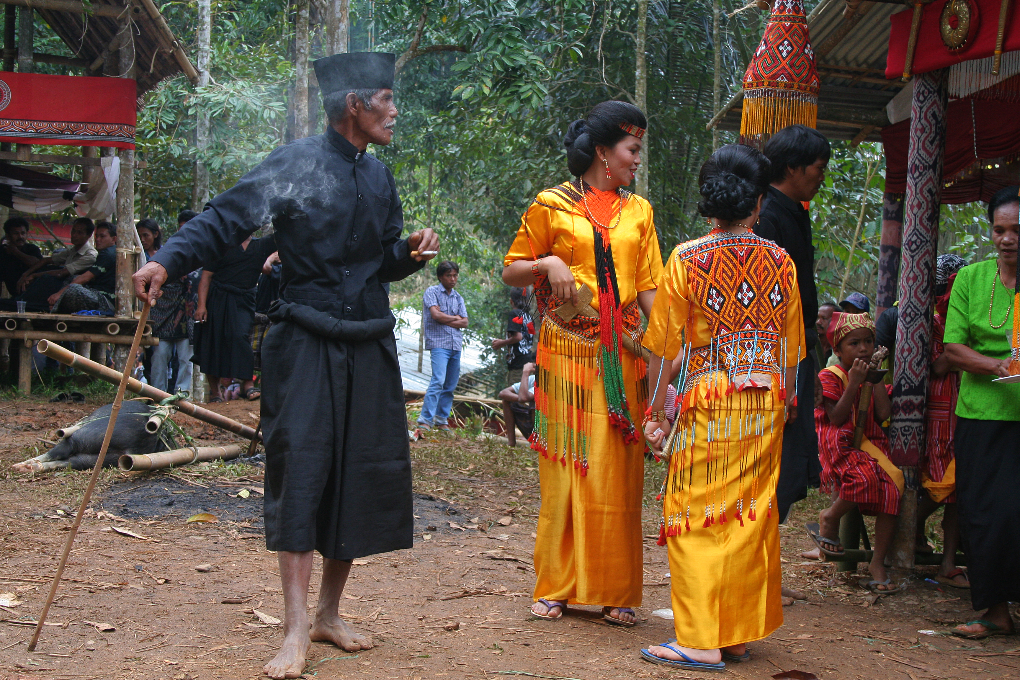 Trajes de ceremonia en funeral, Sulawesi, Indonesia