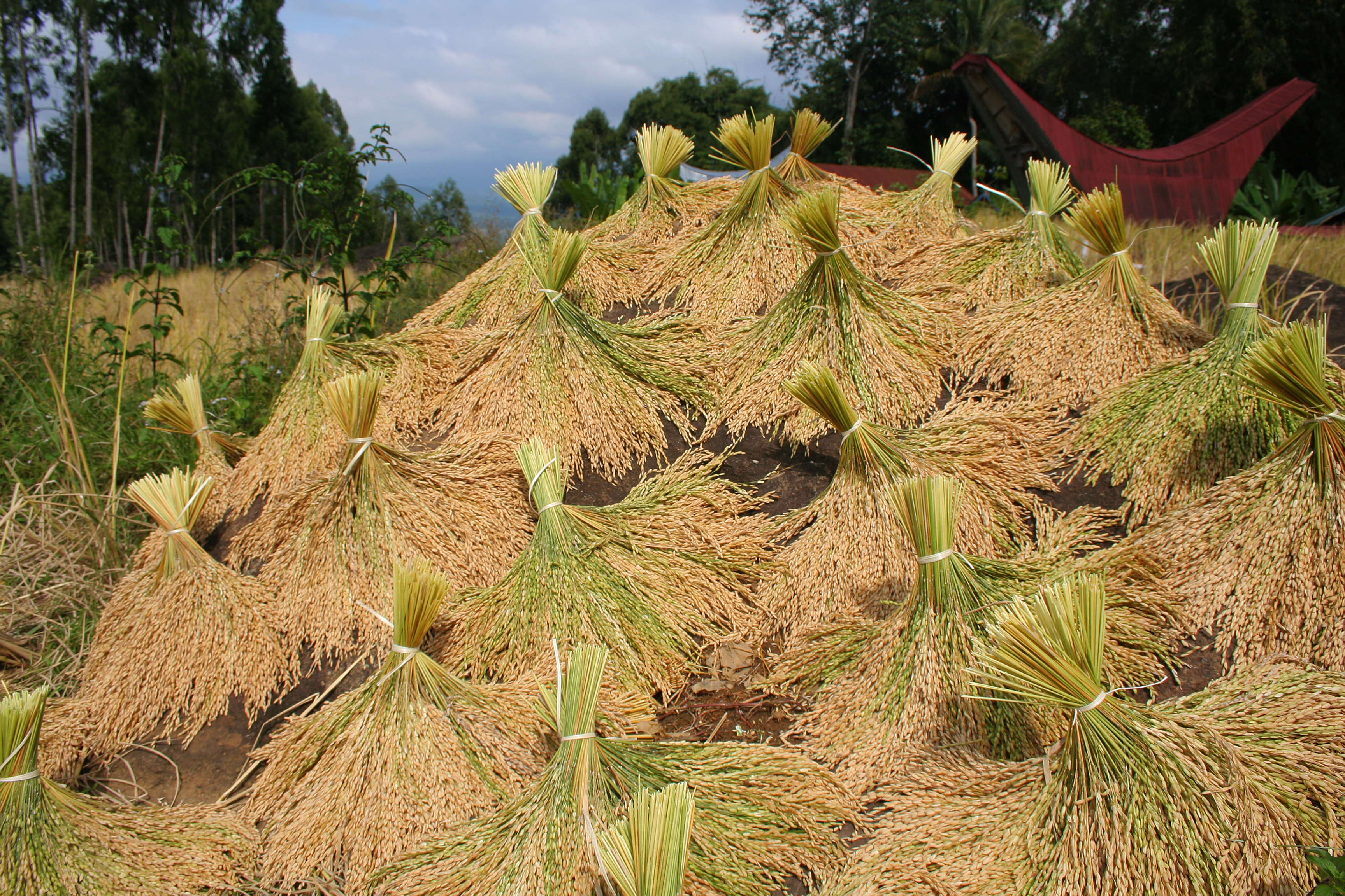 Manojos de arrozal secándose, Sulawesi, Indonesia