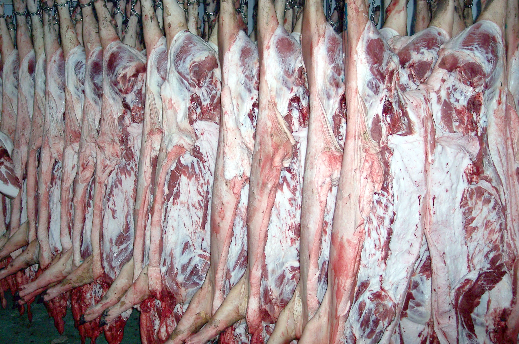 Cerdos colgados del rail